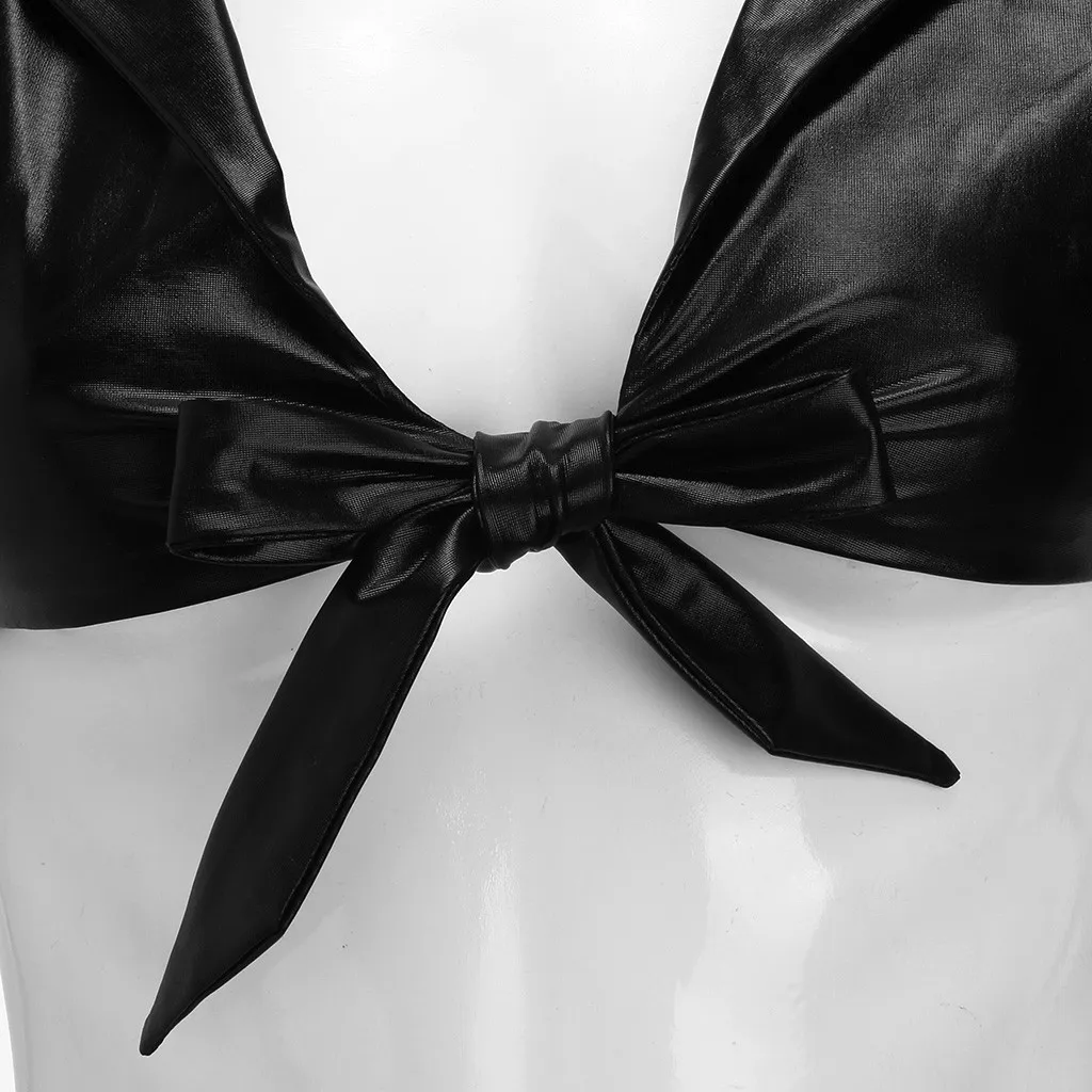 Модное сексуальное черное нижнее белье, бандажный топ с v-образным вырезом, кожаный костюм, ажурное нижнее белье