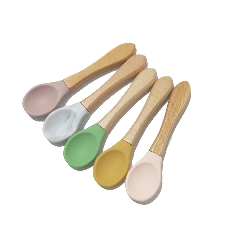 5 шт. детские бамбуковые Обучающие ложки Органическая Мягкая силиконовая для кормления малышей наконечник ложка совок удобная рукоятка подарки для малышей