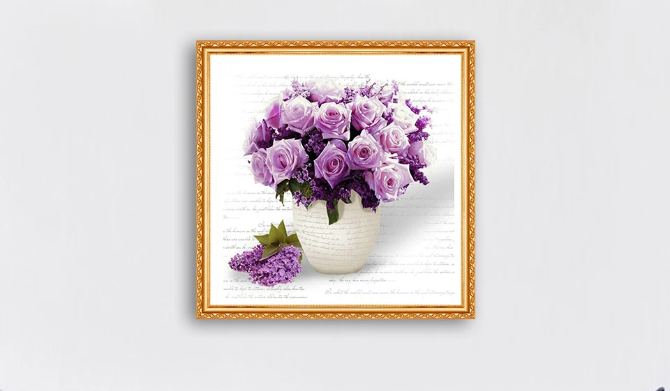 Gloden Panno, 5D, полный, DIY Алмазная вышивка, квадрат, алмазная живопись, вышивка крестиком, 3D, алмаз, рукоделие, фиолетовый цветок