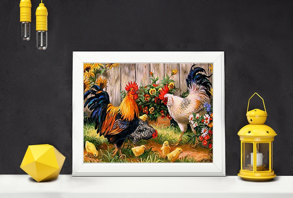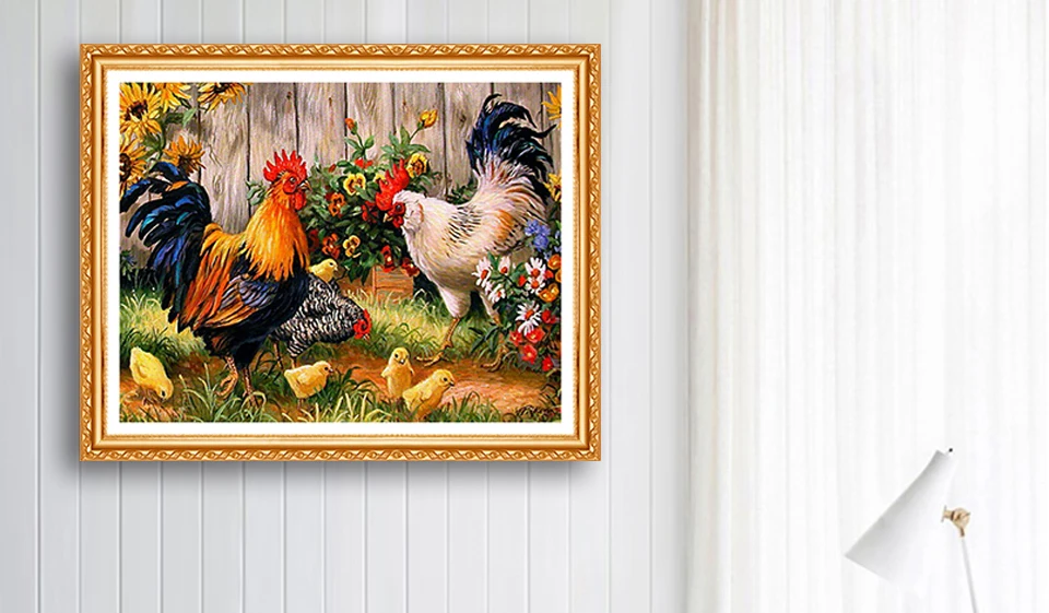 Diy алмаз, живопись, декоративные картины цыплят в саду Алмазная вышивка полный квадратный дрель Петух Курица