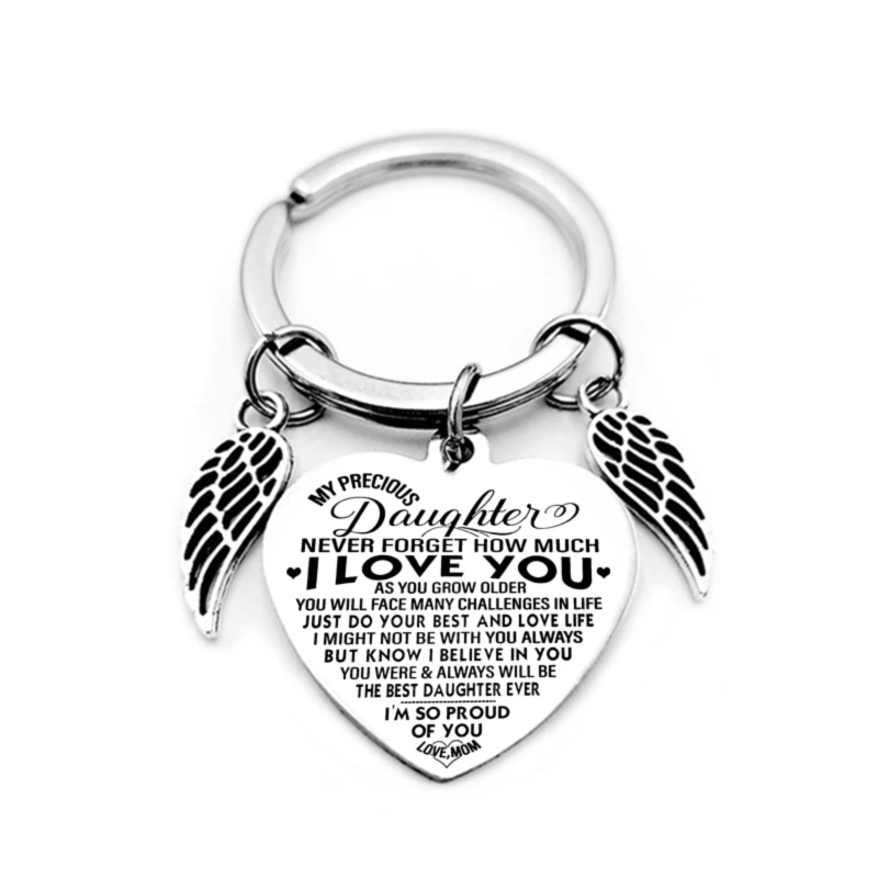 К моей дочери кулон-сердце брелок Крылья Ангела вдохновляющий брелок на ключи в форме буквы ювелирные изделия из нержавеющей стали Любовь подарки от папы и мамы