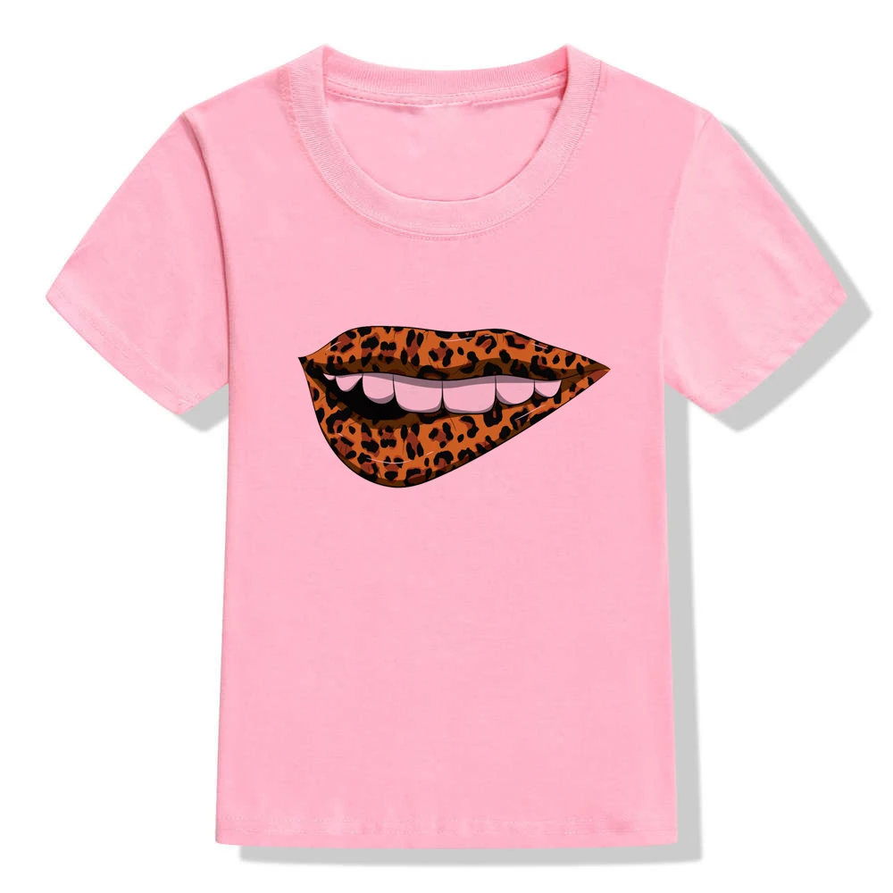 Леопардовая расцветка, сексуальные футболки для девочек с рисунком губ, топы для девочек, Милая футболка для маленьких девочек, Kawaii, Детская футболка с круглым вырезом, летняя модная одежда