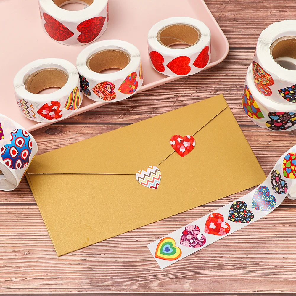 500 шт/рулон любовь в форме сердца этикетка наклейка Скрапбукинг посылка подарочная упаковка этикетки для печати День рождения Поставка канцелярских принадлежностей