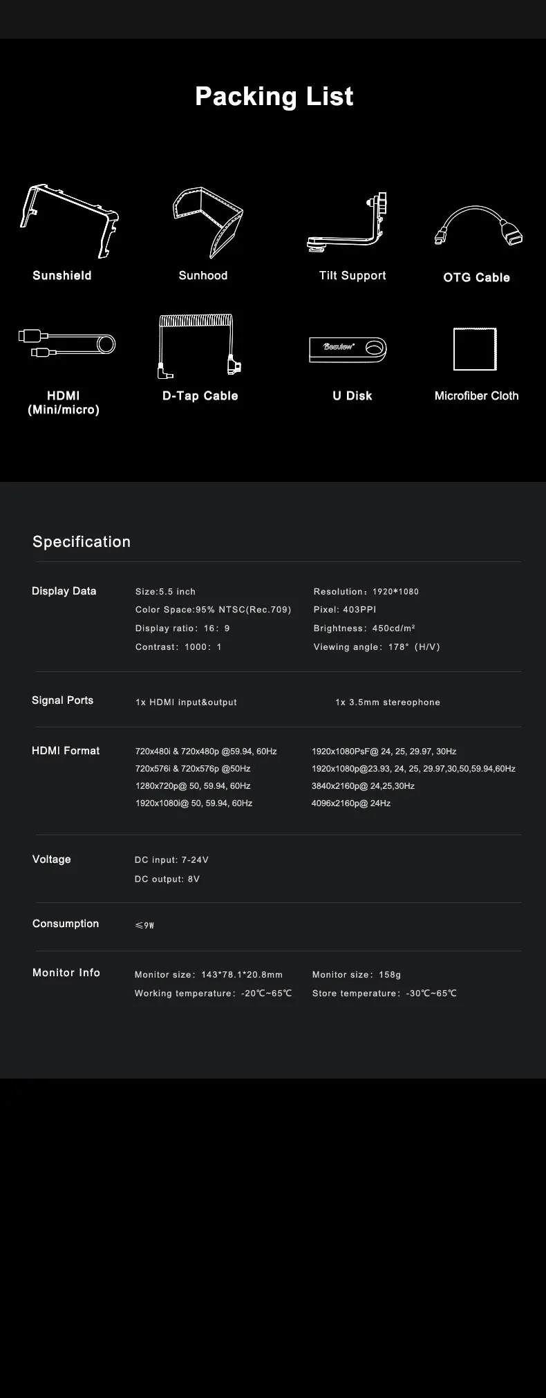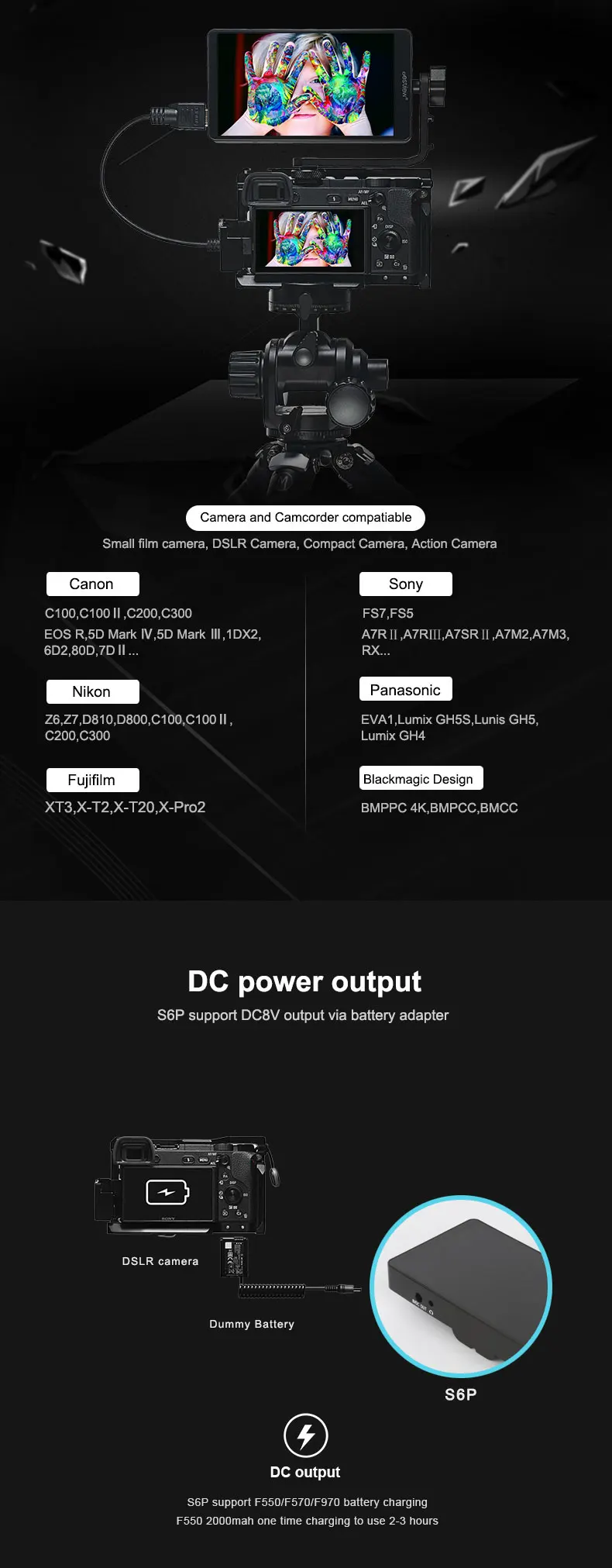 Besview S6-Plus 5,5 дюймов полный сенсорный экран 3D LUT полевой монитор
