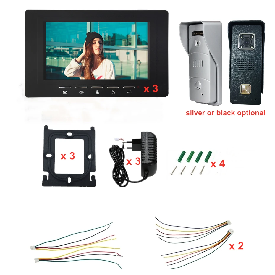 Комплект из 3 предметов, 7 дюймов крытый монитор 1 шт. 1200TVL наружная панель вызова (серебряный или черный цвет на выбор) Прочие аксессуары