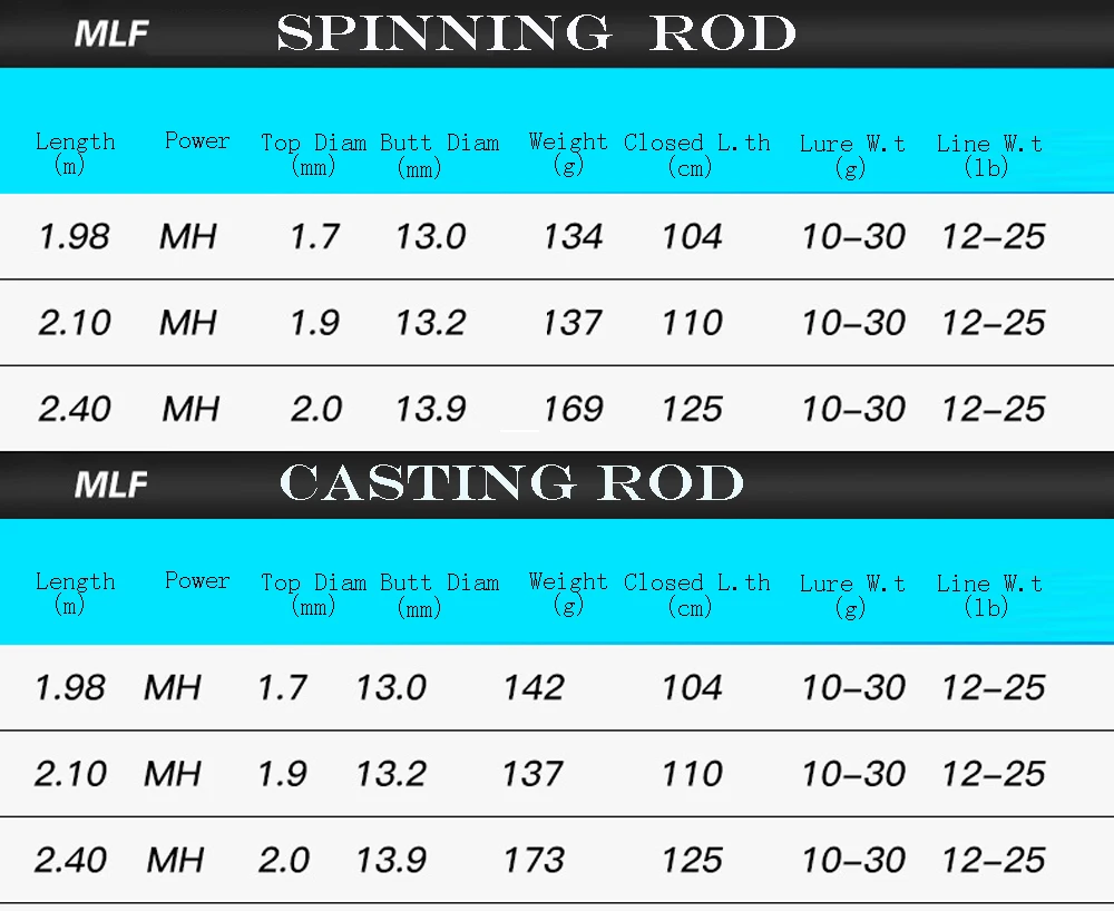 Подробная информация о продукте: MLFfuji 1,98 м | Спиннинг | 2 секции | MHPower | Приманка W. 10-30 г | Линия W. 12-25 фунтов | Вес стержня: 134 г MLFfuji 2,1 м | Спиннинг | 2 секции | MH Мощность | Приманка W. 10-30 г | Линия W. 12-25 фунтов | Вес стержня: 137 г MLFfuji 2,4 м | Спиннинг | 2 секции | MH Мощность | Приманка W.10-30g | Линия W. 12-25 фунтов | Вес стержня: 169 г MLFfuji 1,98 м | Литье | 2 секции | MH Мощность | Приманка W. 10-30 г | Линия W. 12-25 фунтов | Вес стержня: 142 г MLFfuji 2,1 м | Литье | 2 секции | MHPower | Приманка W. 10-30 г | Линия W. 12-25 фунтов | Вес стержня: 137 г MLFfuji 2,4 M | Литье | 2 секции | MH Мощность | Приманка W. 10-30 г | Линия W. 12-25 фунтов | Вес стержня: 173 г Посылка список: 1 шт. * Приманка; 1 шт. * сумка для удочек