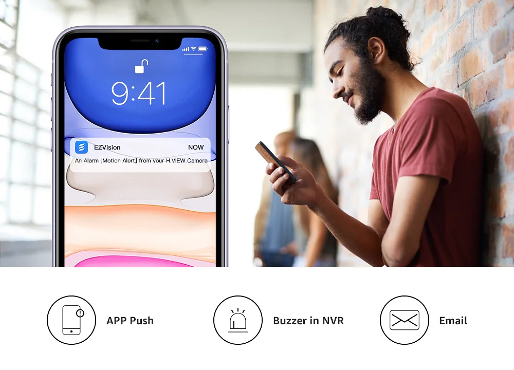 Когда кто-то врывается в зону съемки, сообщения тревоги будут отправлены в приложение вашего телефона
