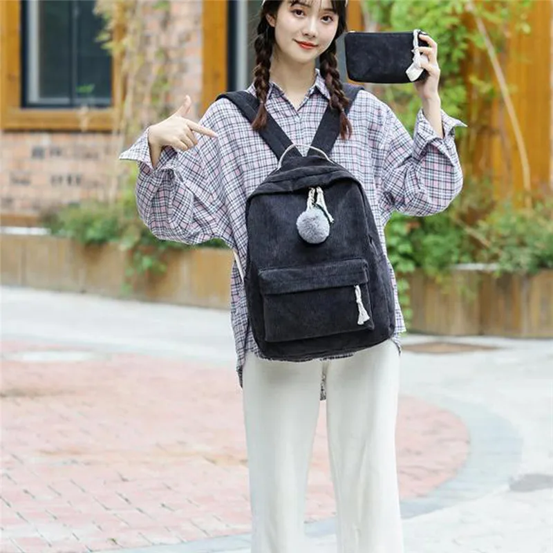 Вельветовый рюкзак длина * ширина и высота 30*12*39 см длина портмоне * ширина * высота 16*4*10 см длина плечевого ремня * ширина 85*5 см (длина регулируется)