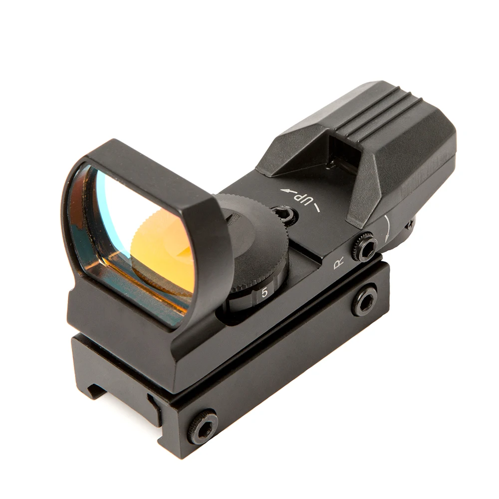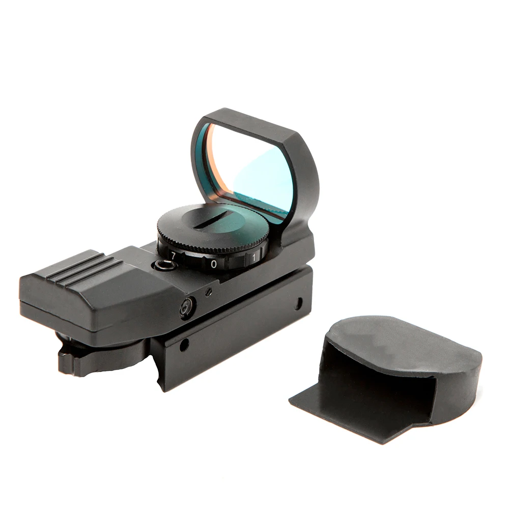 -Изготовлен из алюминиевого сплава с анодированной матовой черной обработкой. -Легкий и компактный дизайн, водостойкий и ударопрочный. -Линзы с антибликовым светоотражающим покрытием обеспечивают хорошую оптическую четкость. -Бескамерная конструкция с 22x33 мм отверстиями рефлекторный объектив, обеспечивает широкое поле зрения. -3-позиционный Реостат подсветки (красный и зеленый). -Для оптимальной универсальности установлены 4 различных ретикулы (круглая точка, крест, 10 Моа и 3 МОА). -Винтовая головка типа винта и регулировка высоты, с винтом замка. -Со встроенным креплением 20 мм. -Подходит для быстрого стрельбы или съемки движущихся целей, кроме обычной съемки. -Питание от 1 литиевой батареи CR2032