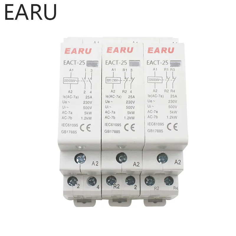 Контактор для дома переменного тока в Основном предназначен для цепей переменного тока 50 Гц или 60 Гц с 230 В. Номинальное рабочее напряжение при AC-7a использовании, Номинальное рабочее напряжение до 230 В, Номинальный рабочий ток до 25 А, Номинальное рабочее напряжение при AC-7b использовании, номинальный ток до 10 А. Использование в разрыве мощности ниже 6kA цепи. Для расстояния подключения или прерывания цепи.