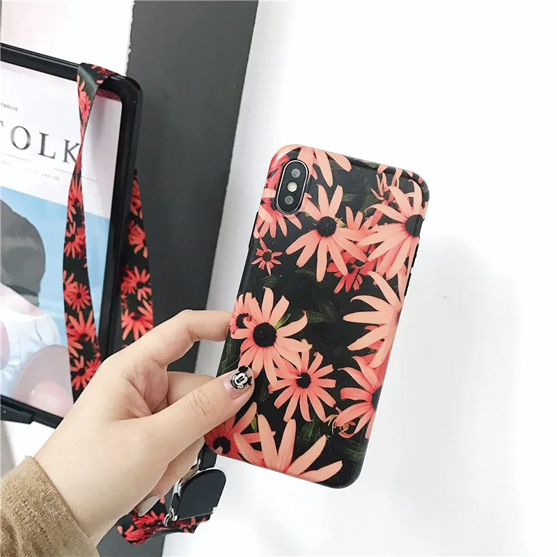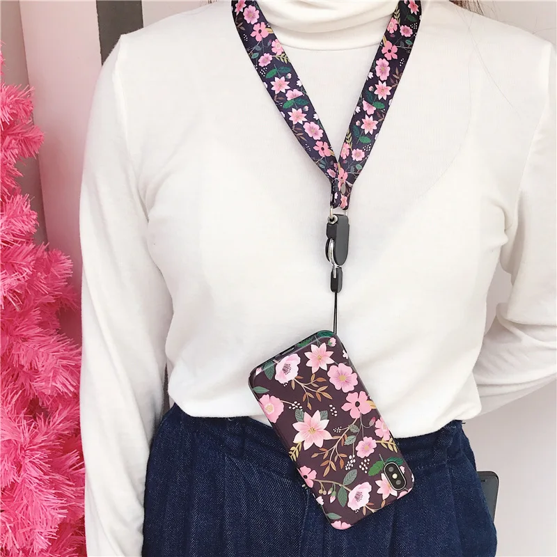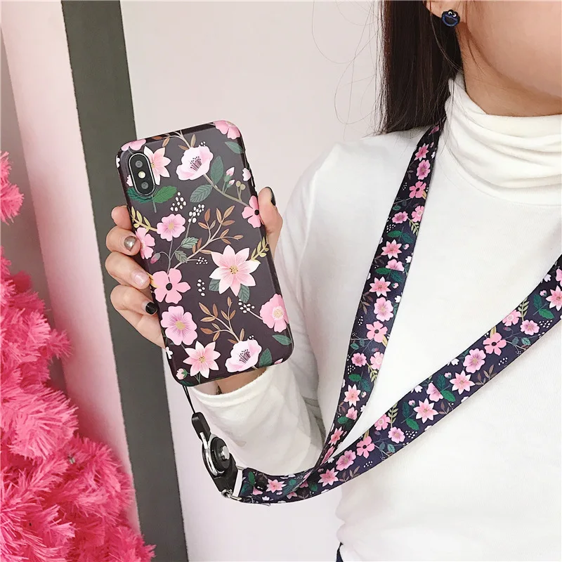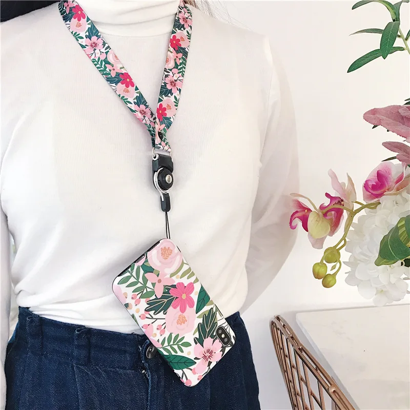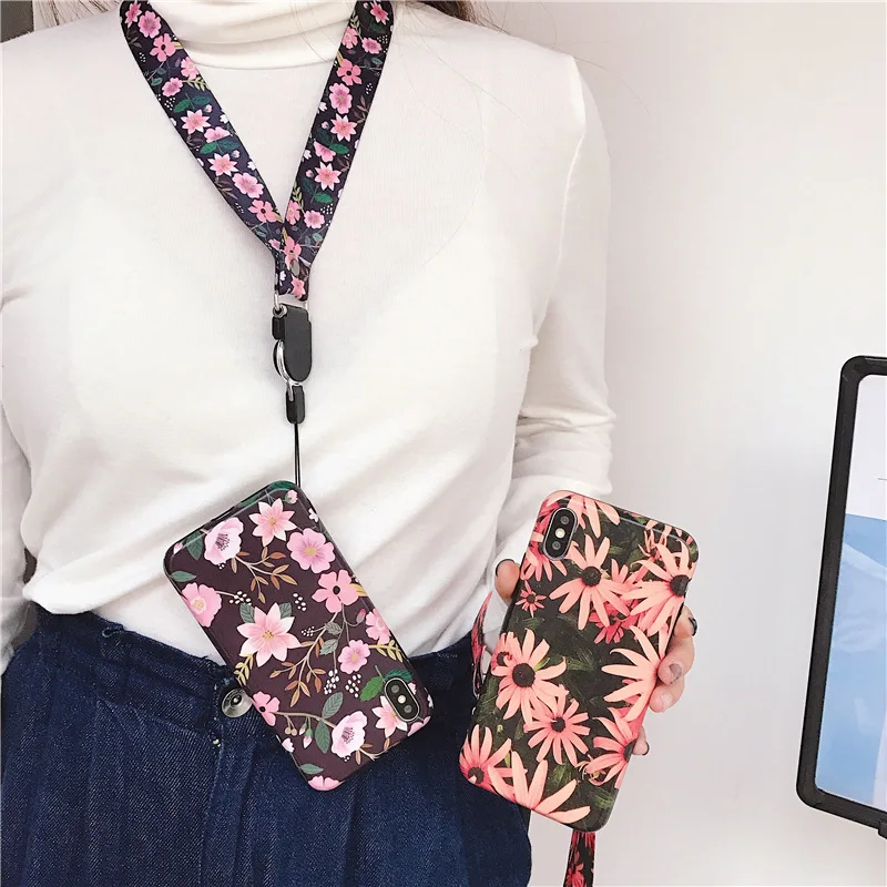 Модные чехлы для мобильных телефонов с цветочным рисунком для iPhone 11 pro XS MAX XR 6 6s 7 8 Plus, мягкий чехол с цепочкой на шее, чехол