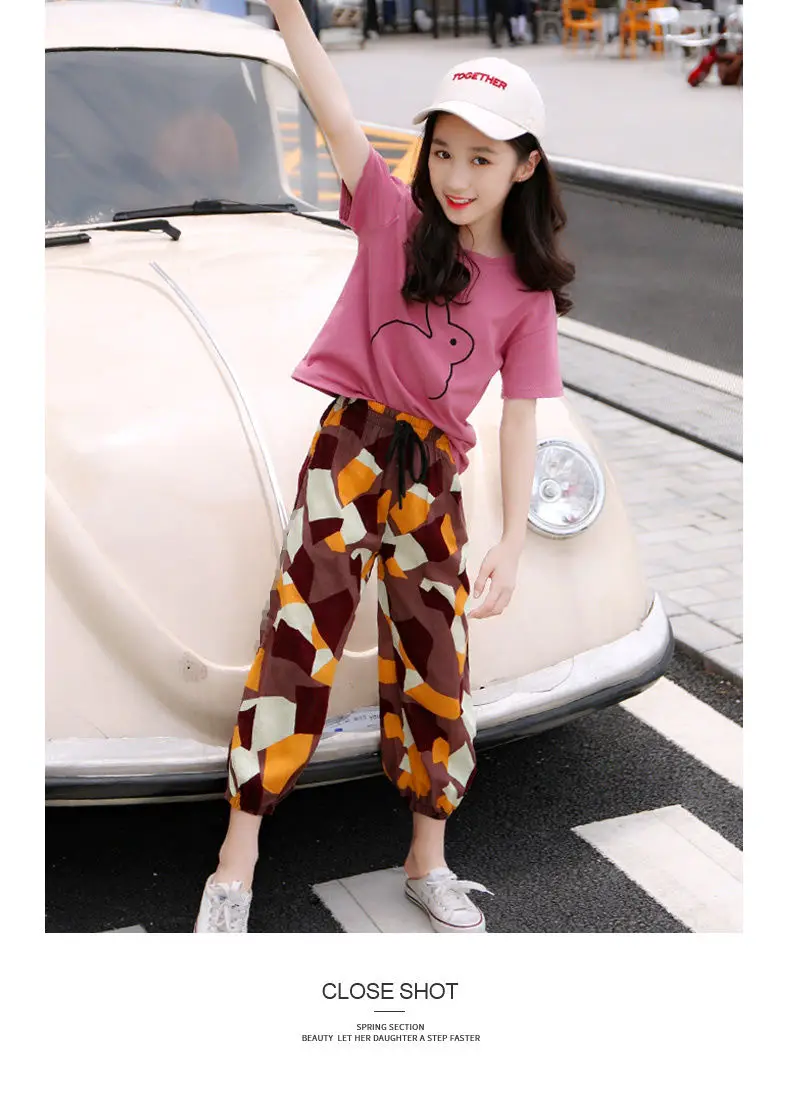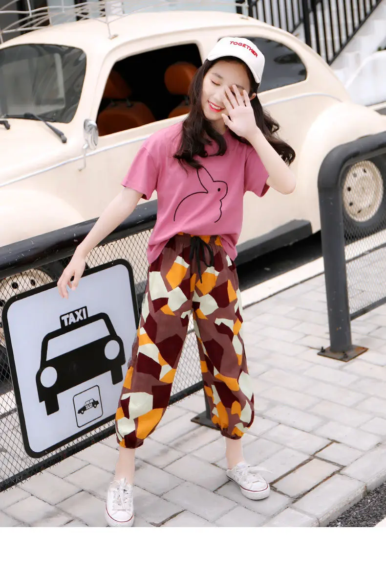 Летние комплекты одежды для девочек футболка с короткими рукавами для девочек-подростков повседневные штаны с принтом Одежда для маленьких девочек комплект детской одежды из 2 предметов
