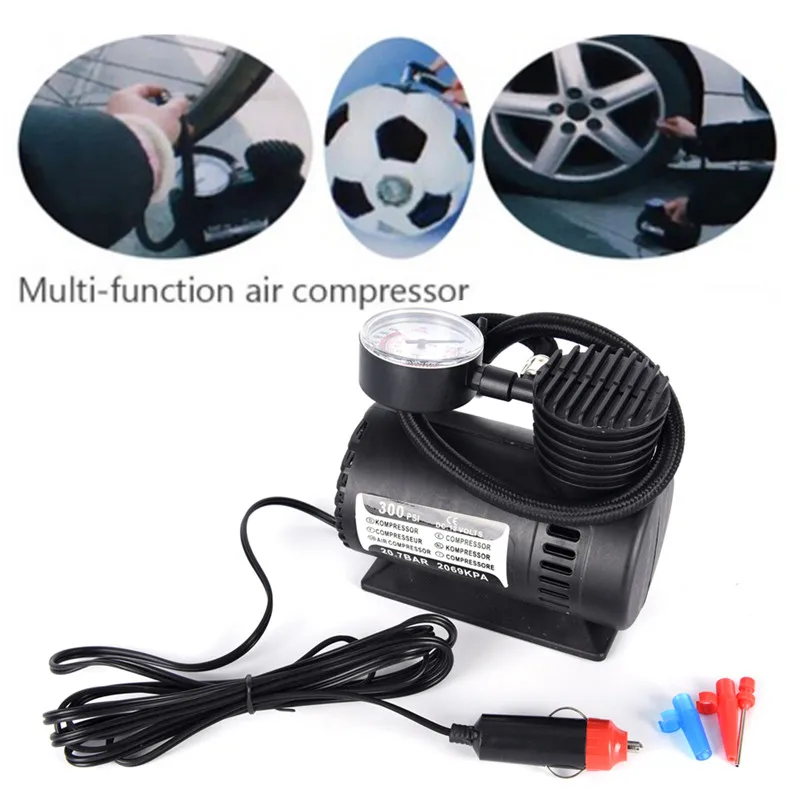 Тип: Автоматический надувной насос Напряжение: 12 (В) Размеры: 13 см * 12 см 1. Портативный и универсальный 2. Простота в использовании-Просто подключите к вашему автомобильному прикуривателю для питания, проскальзывает Универсальный адаптер над шиномонтажным клапаном, и вы готовы надуть 3. Оснащен манометром 4. Идеально подходит для автомобильных и велосипедных шин, спортивных мячей, надувных кроватей и надувных игрушек 5. 300PSI мощный 6. 9 футов Шнур питания 7. Мини Воздушный компрессор является очень ценным инструментом, чтобы иметь под рукой 8. Легко читаемый манометр 9. Он невероятно универсальный и палочка-выручалочка в некоторых случаях 10. Светильник, компактный и портативный, отлично подходит для походов и чрезвычайных ситуаций на дороге Посылка включает в себя: 1 * авто надувной насос