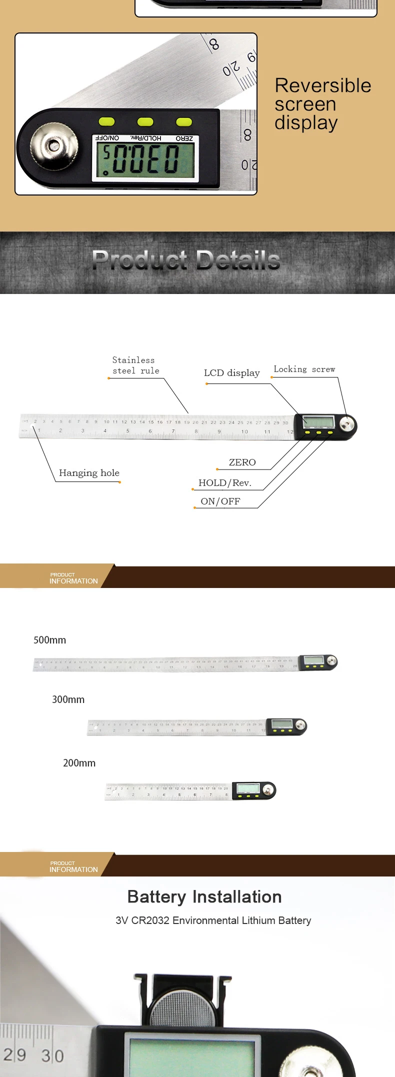 300 мм 12 дюймов цифровой транспортир угловая линейка 200 мм 8 дюймов Угол Finder метр из нержавеющей стали 360 градусов Гониометр инклинометр