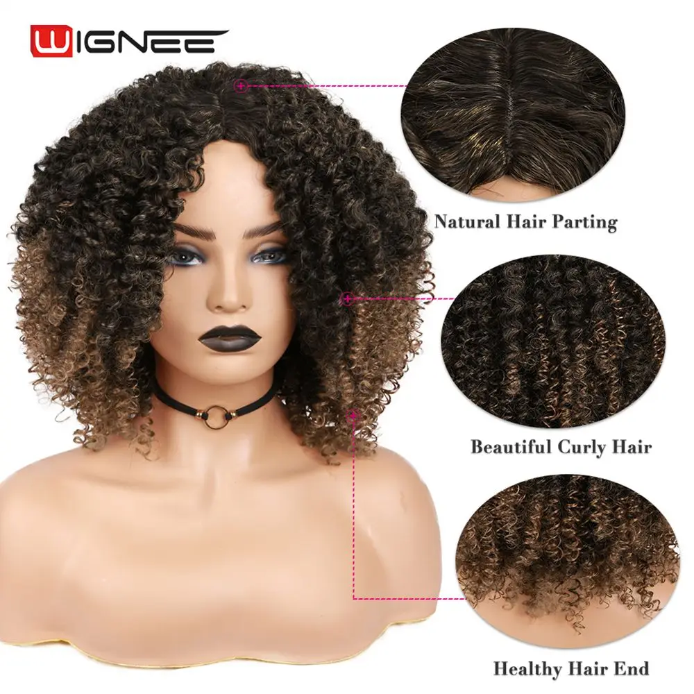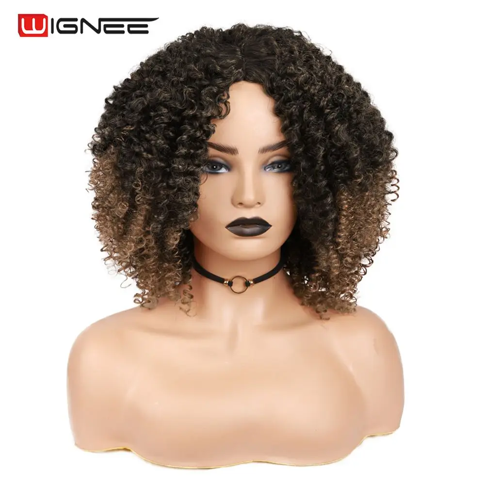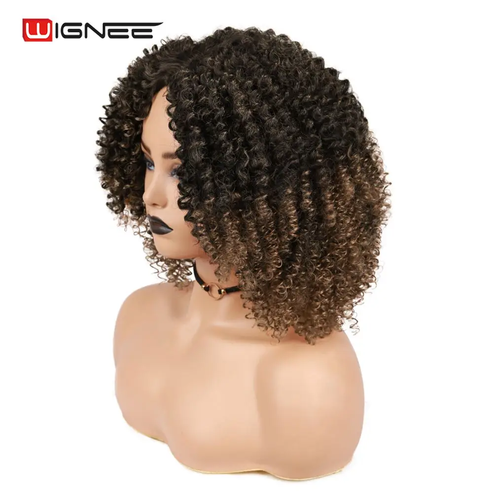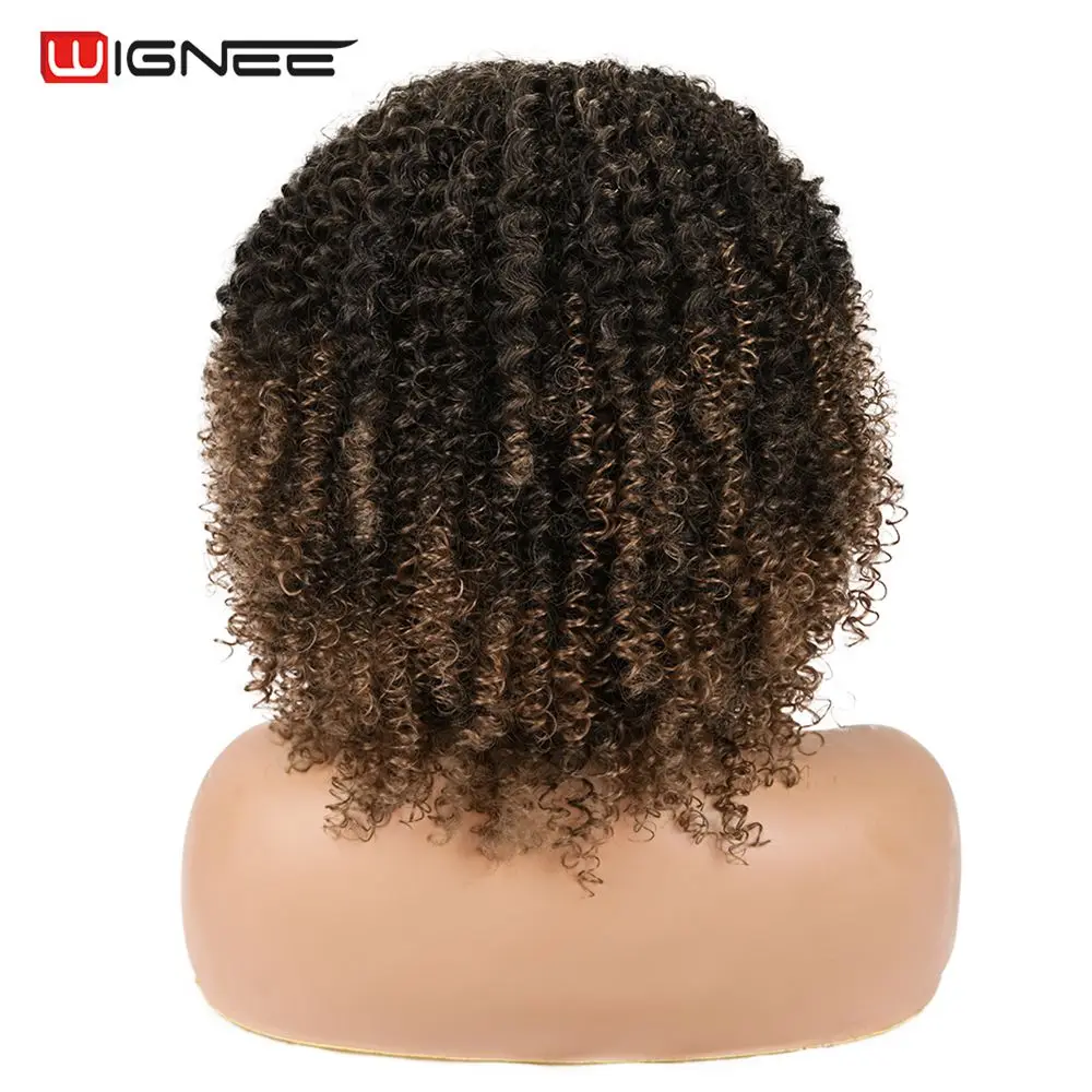 Wignee короткие сапоги с толстой подкладкой, чтобы-коричные вьющиеся синтетические парики для чернокожих Для женщин натуральные теплостойкие афро искусственные волосы Американский ежедневно парик