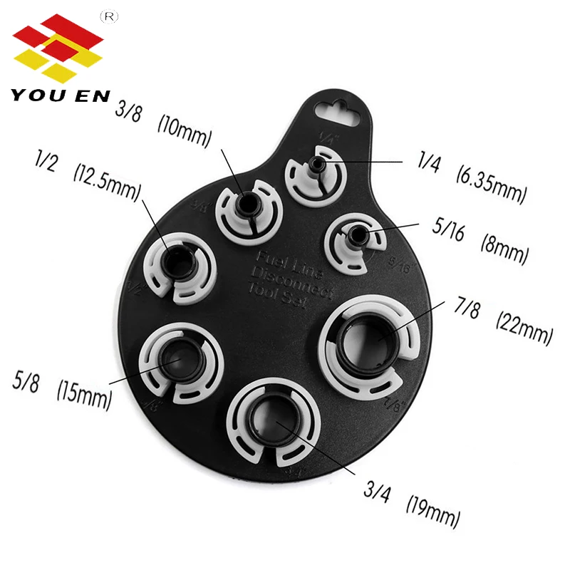 -Материал: пластик -Цвет: белый -Размер изделия: 145*113 мм/5,71*4,45" -Характеристики: 1/4 ", 5/16", 3/8 ", 1/2", 5/8 ", 3/4", 7/8" -Количество: 7 шт. -Вес брутто: 110 г -Функция: для легкой разборки и сборки быстроразъемных соединений для автомобильных труб кондиционирования воздуха и топливных труб.