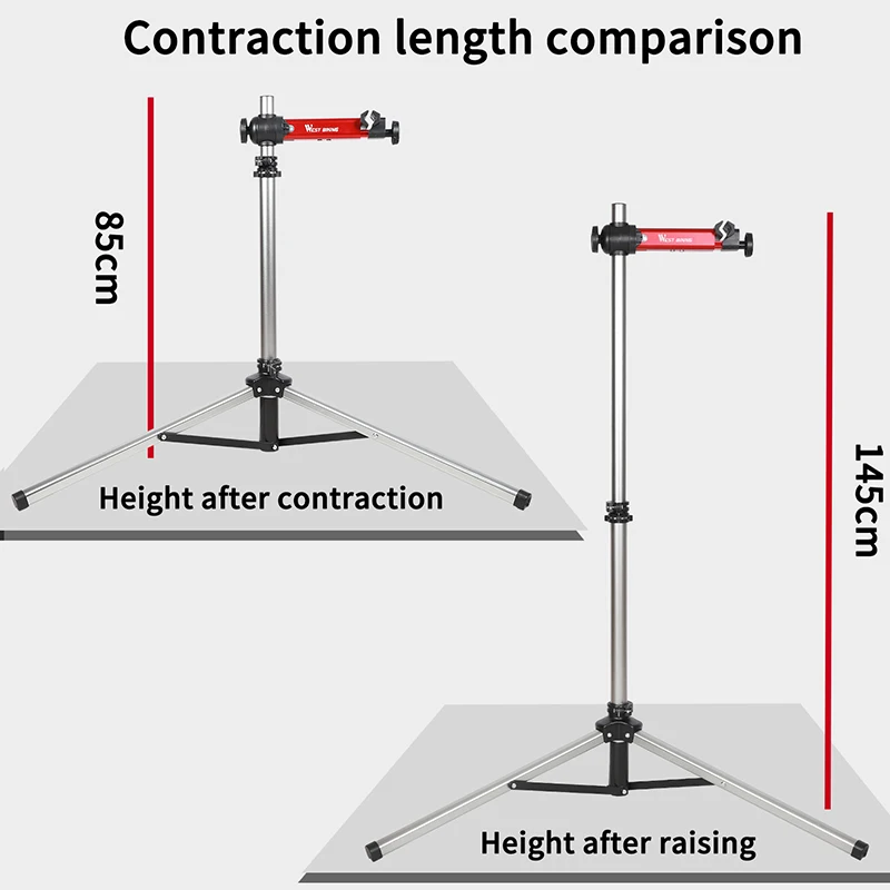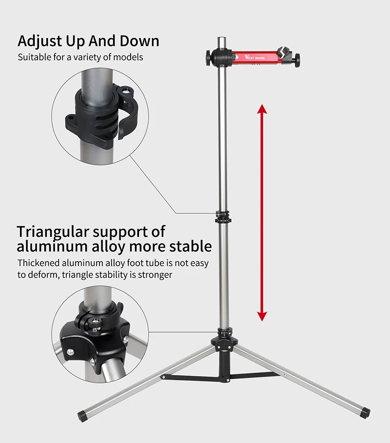 1. Светильник из алюминиевого сплава; 2. Почти не требуется сборка, он выходит из коробки, готовой к использованию; 3. Компактный в сложенном состоянии; 4. Быстрый выпуск и регулируемая высота 5. Вращающийся на 360 ° зажим, это означает, что вы можете поставить свой велосипед под углом ant; 6. Конструкция с тремя ножками является экономичной и очень стабильной.