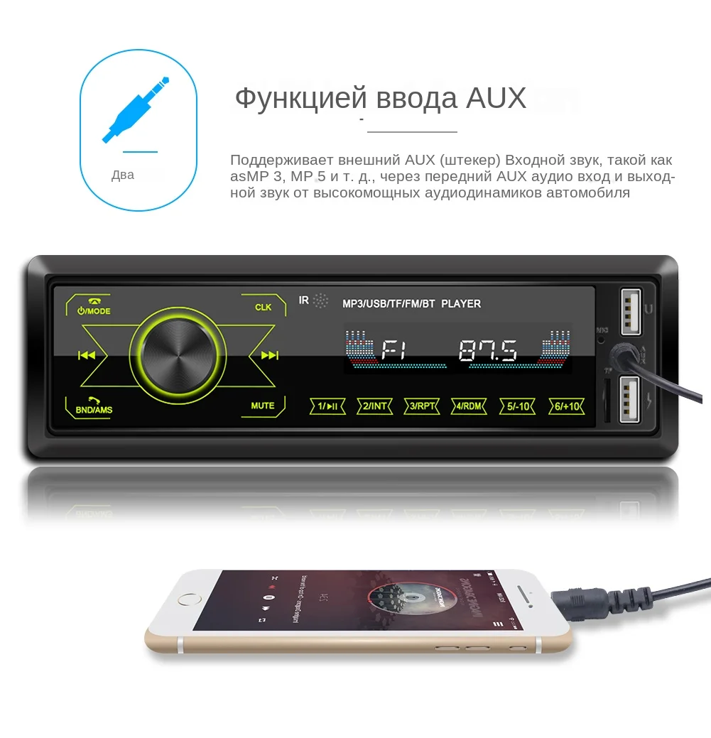 Интерфейс USB и количество: 2 порта (USB 1: чтение музыки на u-диске; USB 2: Зарядка мобильных телефонов)