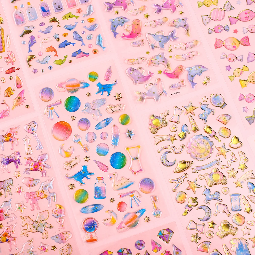 Винтажные милые Молочные Наклейки ручной работы, прозрачные радужные единороги, кошки, фламинго, алмазные принадлежности для скрапбукинга, Канцтовары