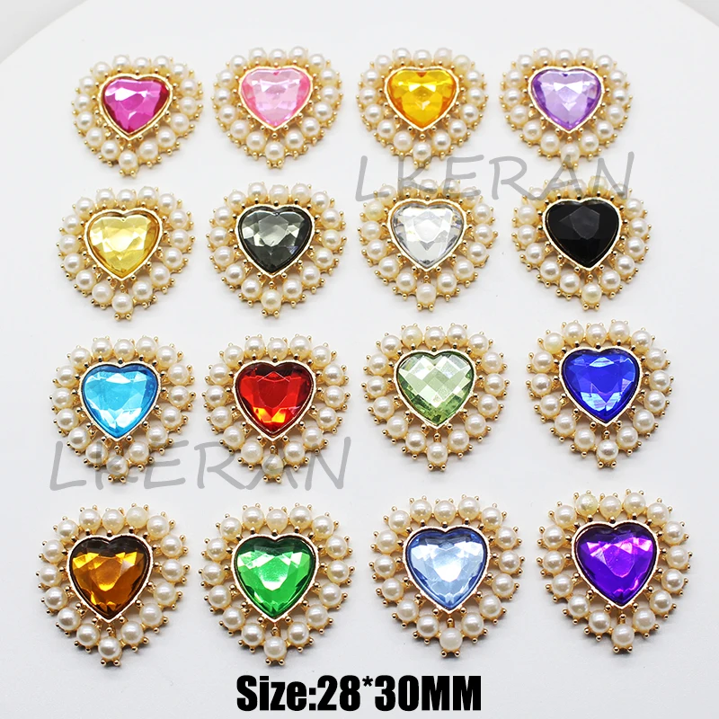 Новинка, 28*30 мм, в форме сердца, 10 шт./лот, цвет слоновой кости, искусственный жемчуг, акриловая кнопка, плоская задняя часть, ручная работа, металлическое украшение, сделай сам, свадебное украшение.