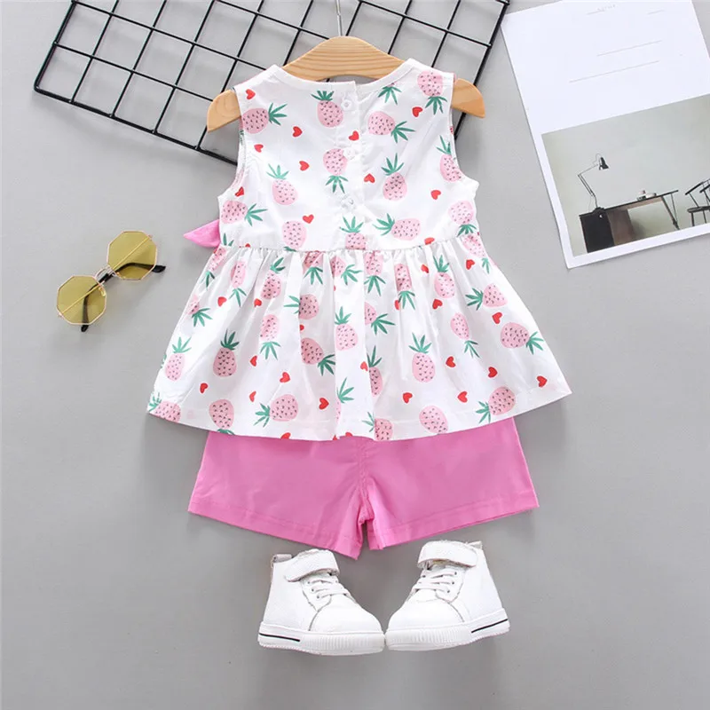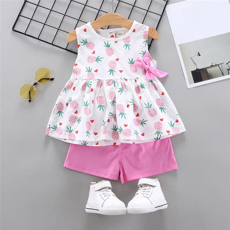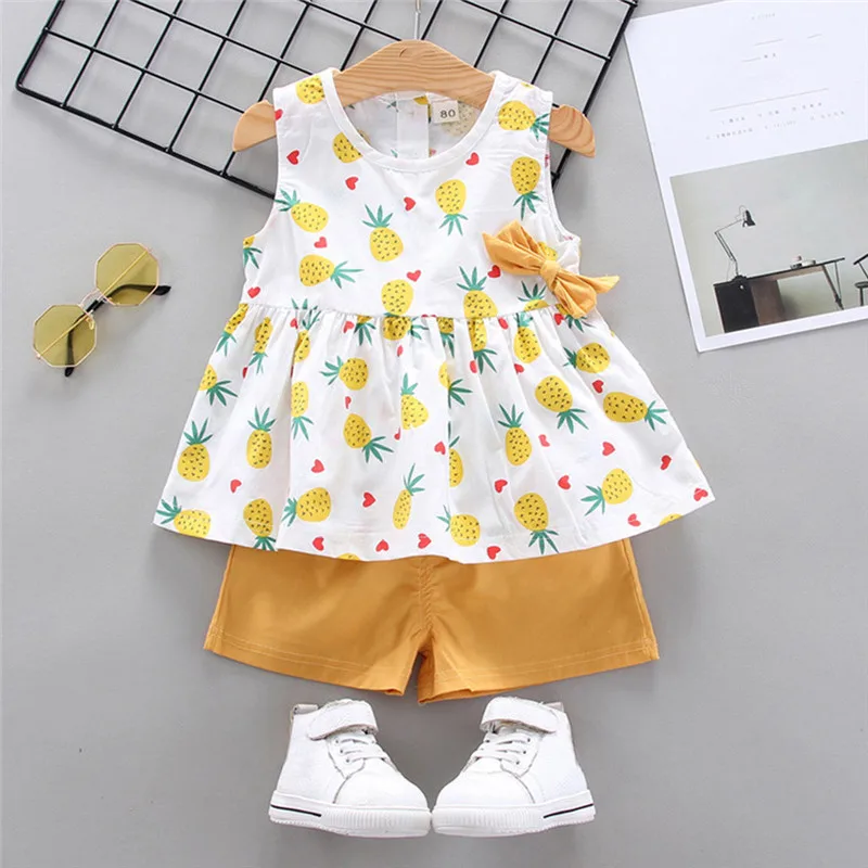 Комплект одежды из 2 предметов для новорожденных девочек, майка без рукавов с принтом фруктов, шорты топы, однотонные шорты Летняя одежда Одежда для новорожденных