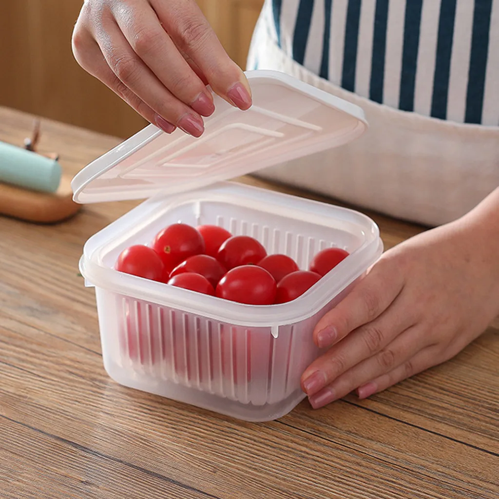 Квадратный слив Герметичная коробка имбирь чеснок лук пищевой контейнер-холодильник для хранения