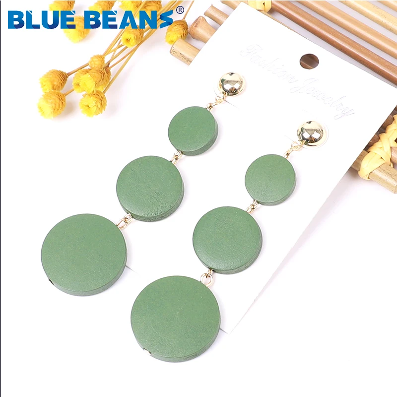 Название продукта:Женские богемные круглые серьги, длинные серьги-подвески золотистого цвета в Корейском стиле, массивная деревянная серьга ручной работы для девушек
