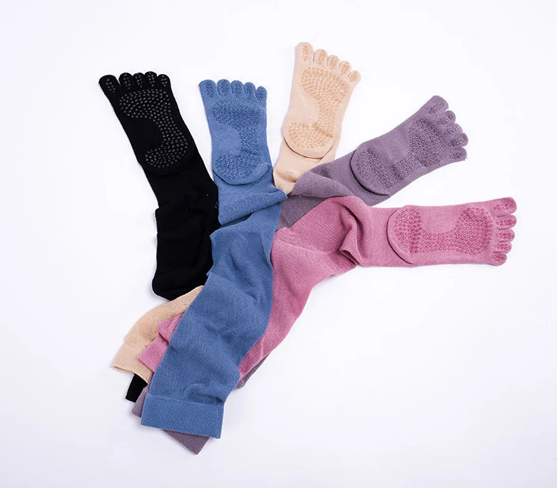 Женские носки для занятий йогой, длинные носки с пятью пальцами, хлопковые тонкие носки с сутулкой, чулки, для занятий фитнесом, нескользящие носки в горошек с раздельным носком