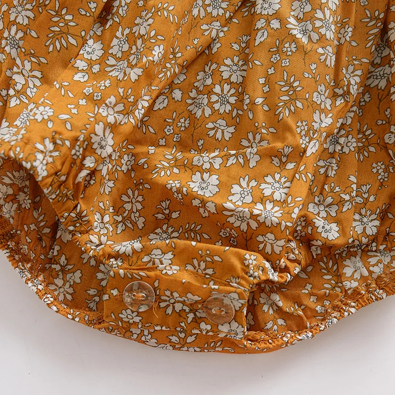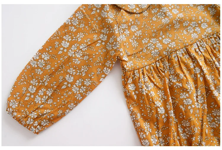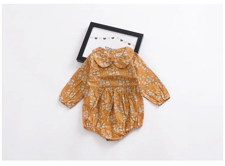 Боди для маленьких девочек с изображением имбиря, желтого цвета, с цветочным рисунком, с воротником «Питер Пэн», с длинными рукавами, Одежда для новорожденных, эксклюзивная осенняя одежда, детский комбинезон
