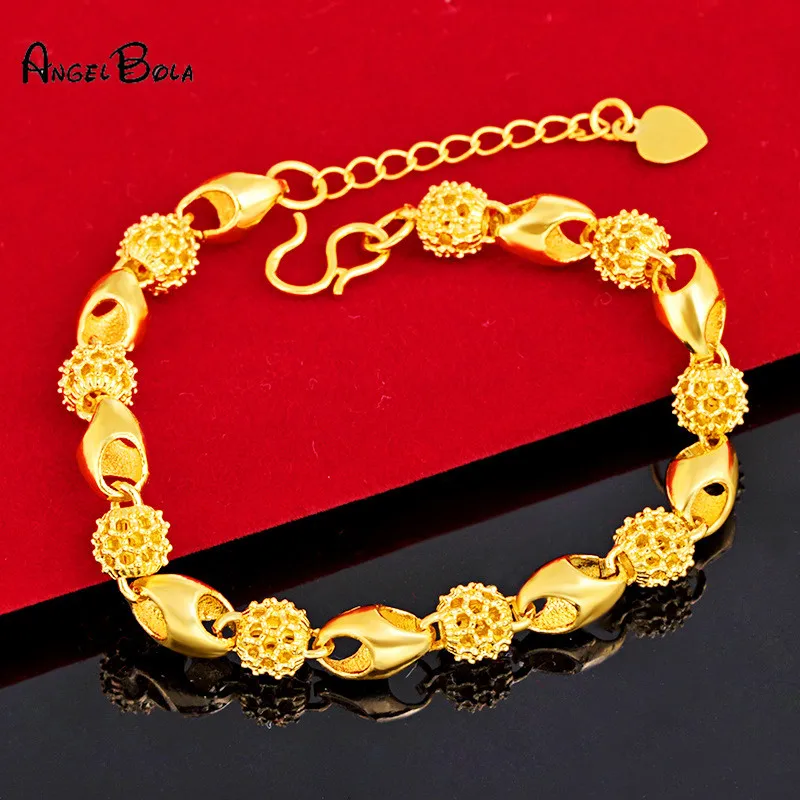 Золотые бусины в форме сердца, роскошные 24K золотые женские браслеты-шармы, регулируемый счастливый браслет для женщин, золотые ювелирные изделия, аксессуары