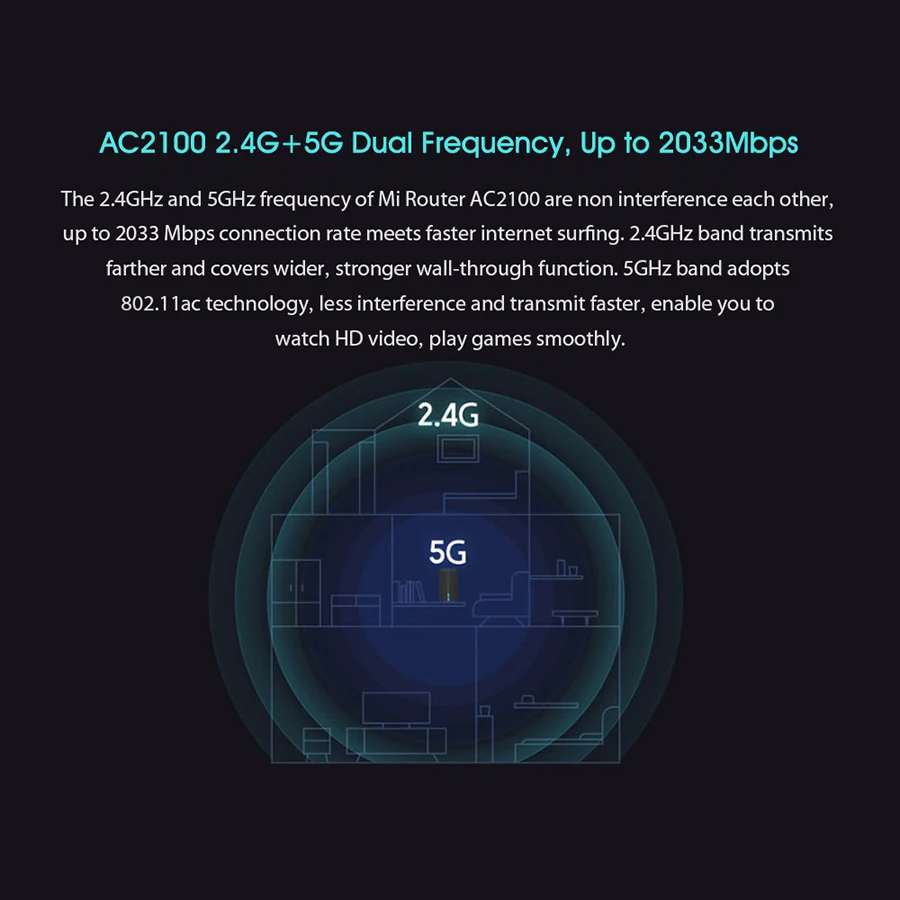 Xiaomi Mi роутер AC2100 беспроводной Gigabit Ethernet порт 2,4 ГГц Wi-Fi 5 ГГц 128 МБ 4 антенны с высоким коэффициентом усиления удаленное управление с помощью приложения