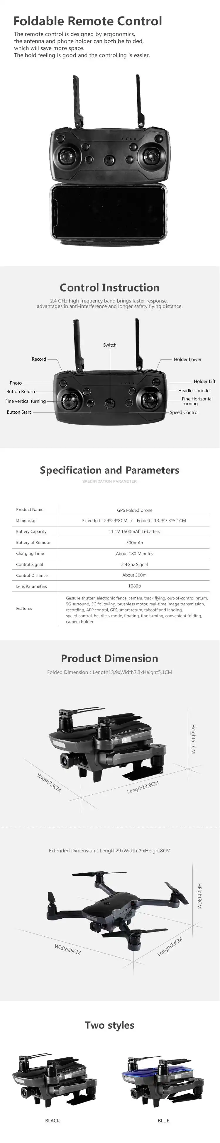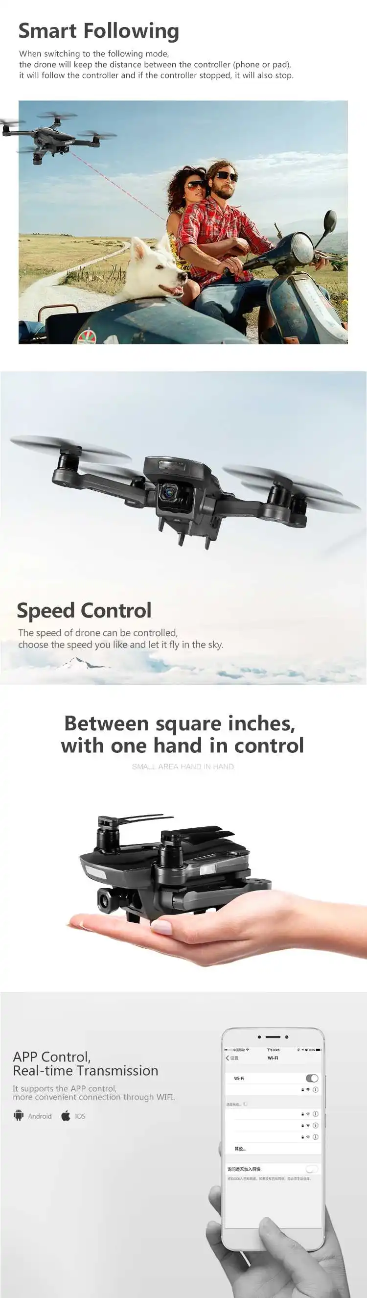 Функция:GPS, установите Высокий режим, режим фиксированной точки, возврат одной кнопки, следуйте за мной, полет вокруг, безотказное возвращение, Безголовый режим, одна клавиша посадки/выключения, вперед/назад, боковой полет, поворот влево/вправо, вверх/вниз, WiFi FPV, фотосъемка, запись