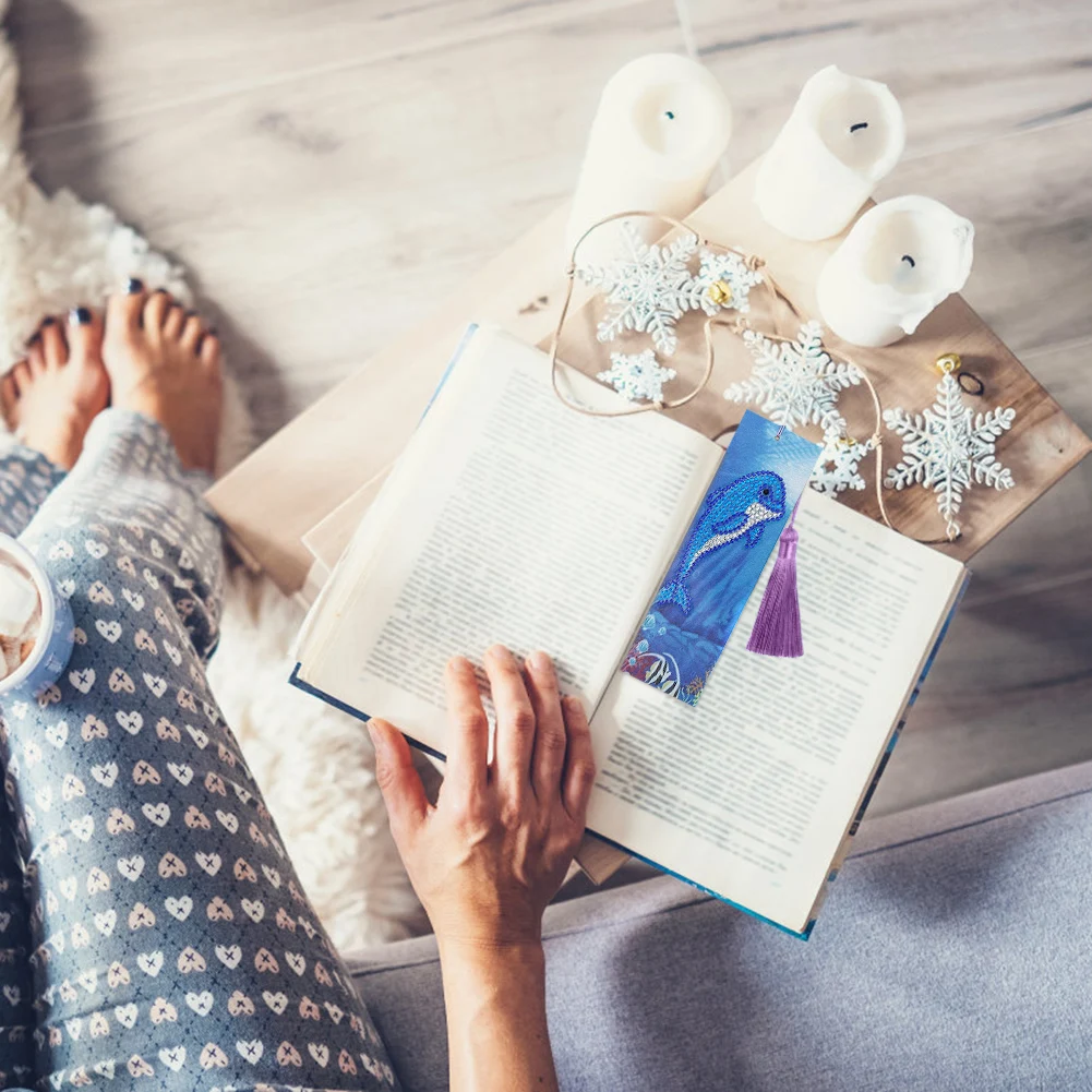 DIY Специальная форма алмазная картина кожаная Закладка с кисточкой Вышивка Дельфин книга логотип DIY ремесло подарки