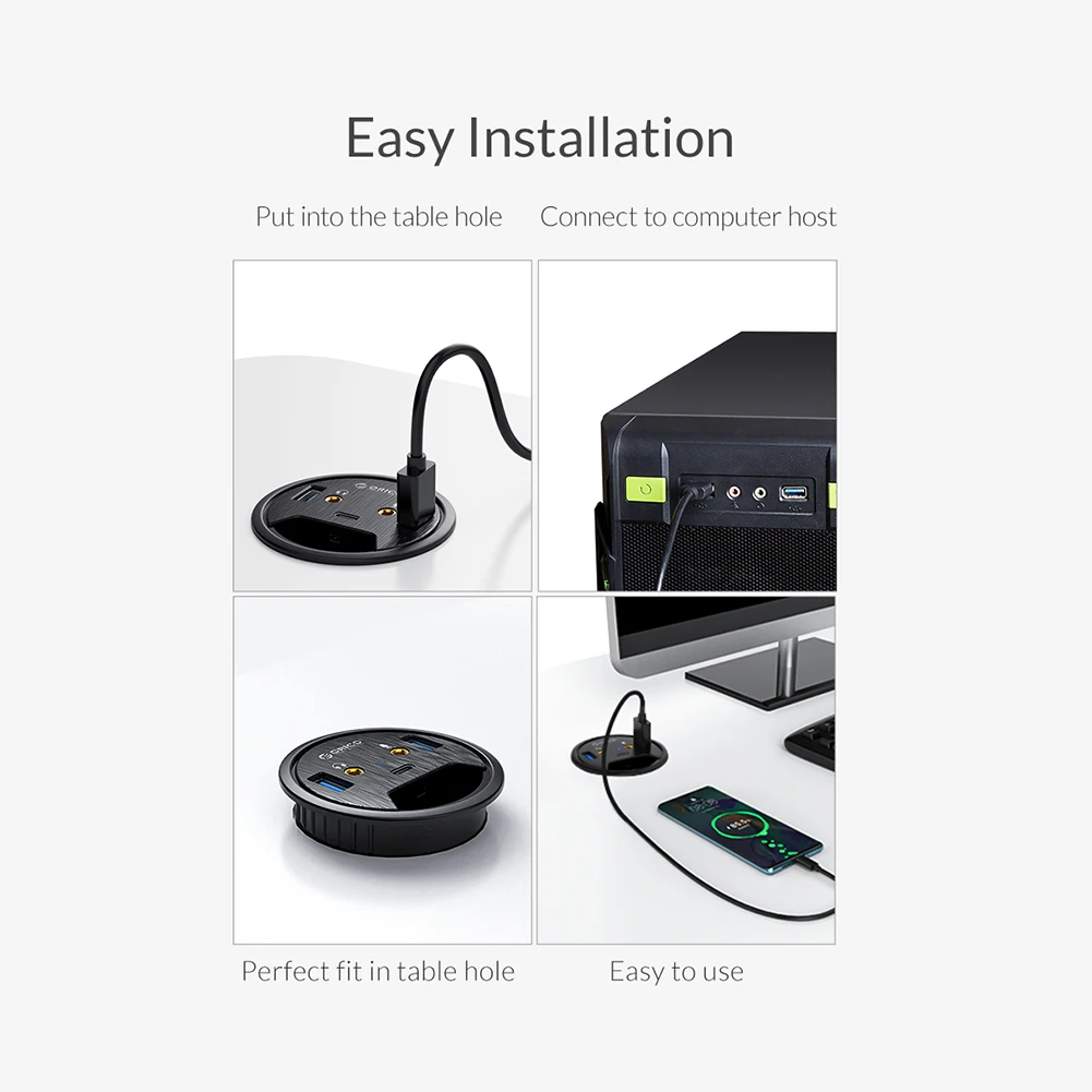 ORICO Настольный втулка USB 3,0 концентратор Type-A тип-c аудио порт ключ сплиттер Многофункциональный блок питания Настольный монтажный адаптерORICO DESK-2U1C Настольный втулка USB 3,0 концентратор Type-A Type-C аудио порт ключ сплиттер Многофункциональный блок питания Настольный монтажный адаптер