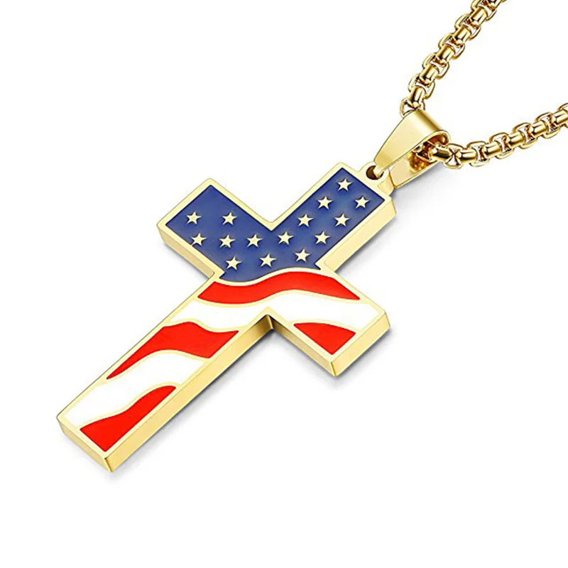 Ожерелье из нержавеющей стали с американским флагом и подвеской в виде креста, эмаль, флаг США, патриотические христианские ювелирные изделия для мужчин