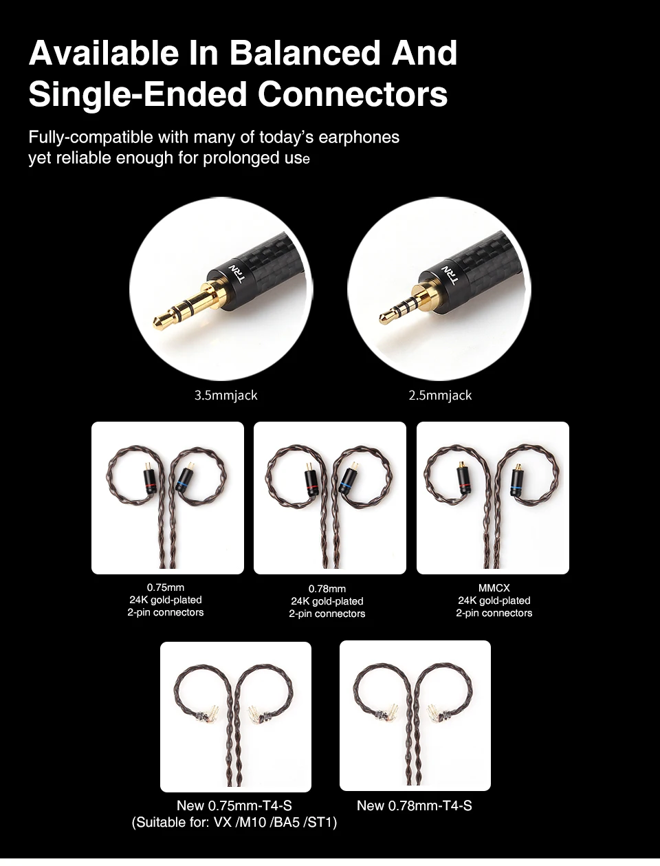 9. В комплект входит: кабель для наушников TRN T4 * 1 шт. (в комплект не входят наушники и чехол, только кабель)