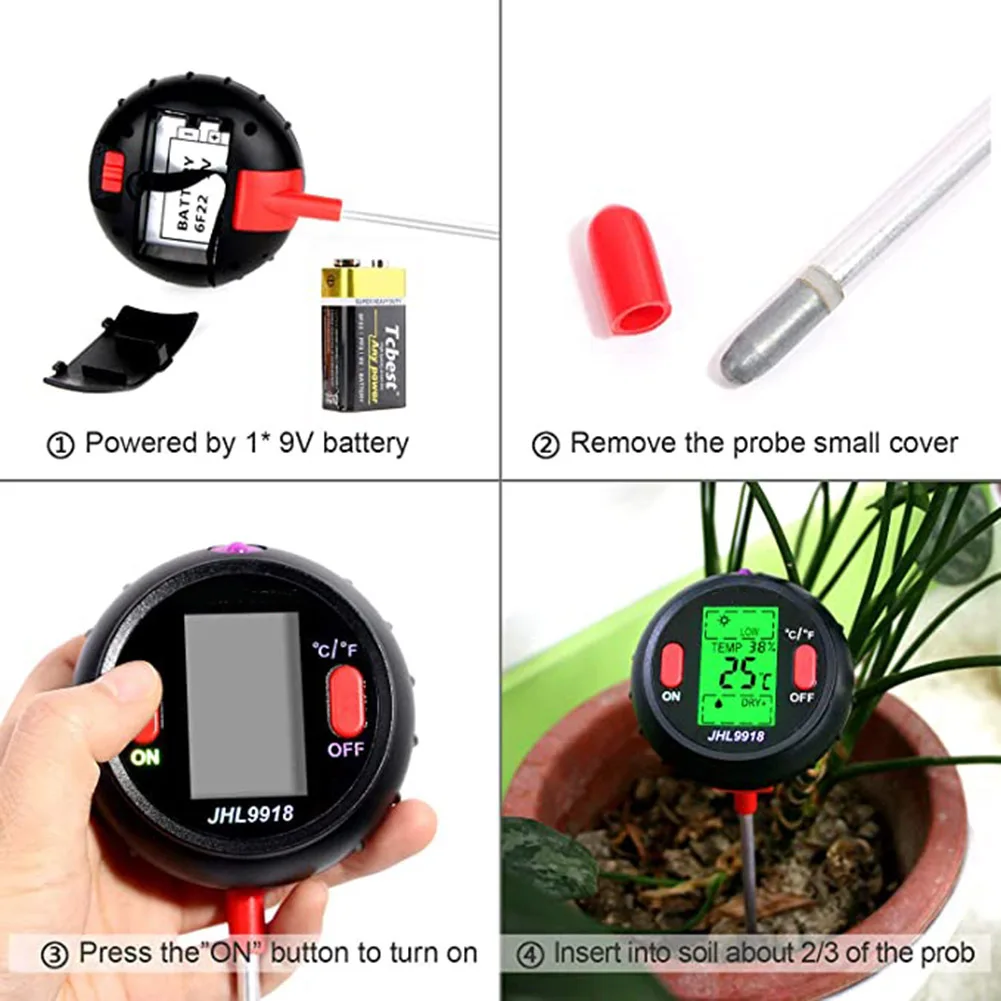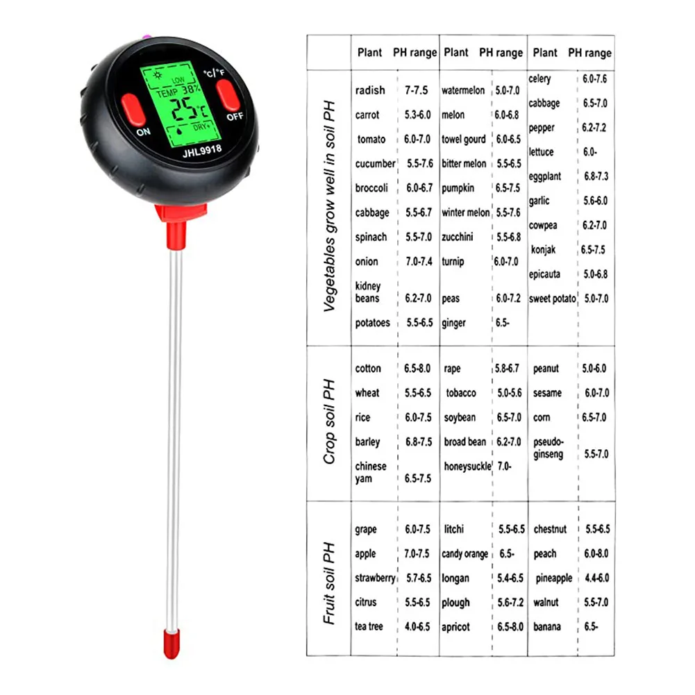 5 в 1 функции:Измерьте влажность почвы, PH почвы, температуру почвы, интенсивность солнечного света и температуру окружающей среды, что поможет вам выращивать овощи, цветы и растения и сделать их крепкими и здоровыми.