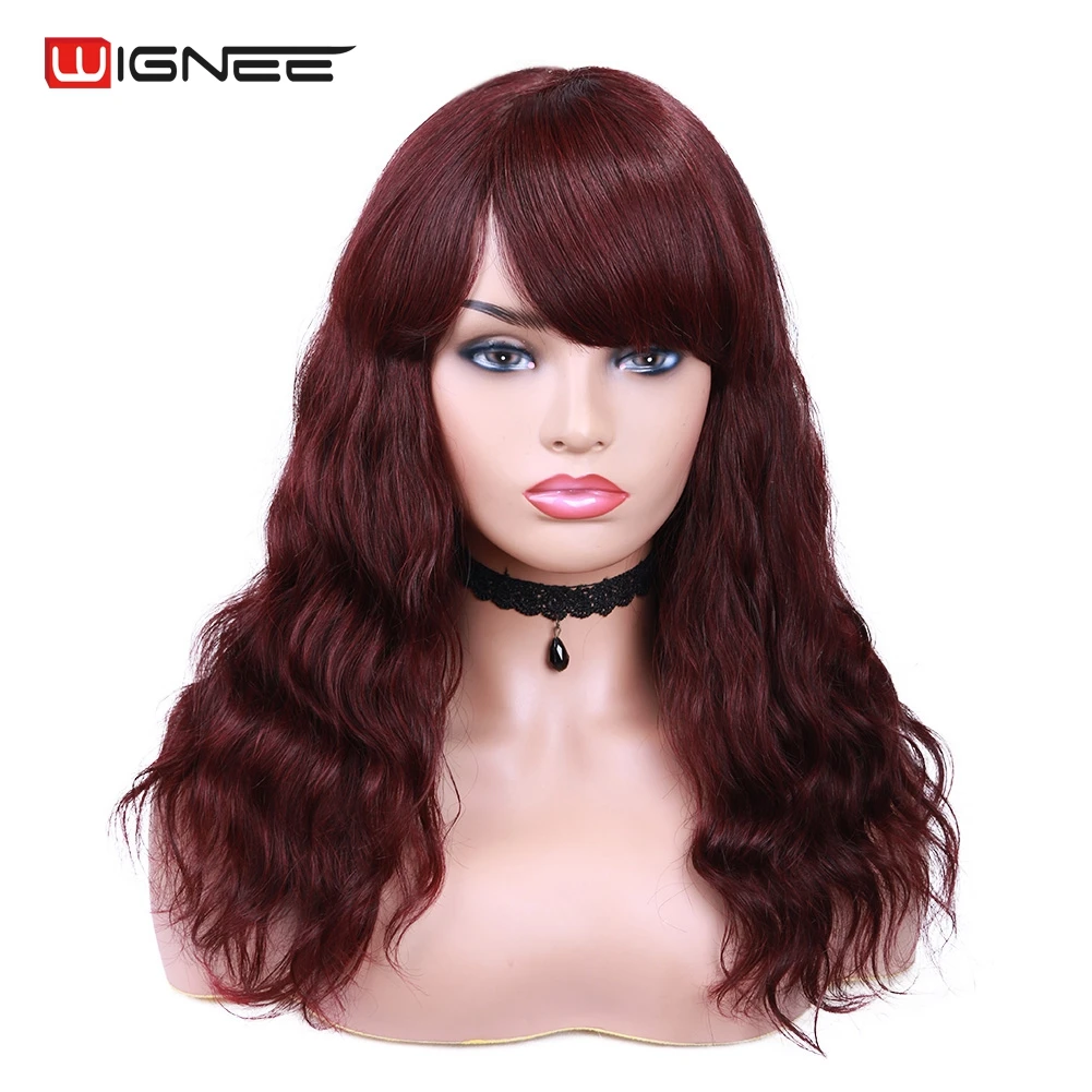 Wignee 99J человеческие волосы, парики с свободной челкой для чернокожих женщин Реми бразильские волосы 150% плотность бесклеевая машина волнистые человеческие волосы
