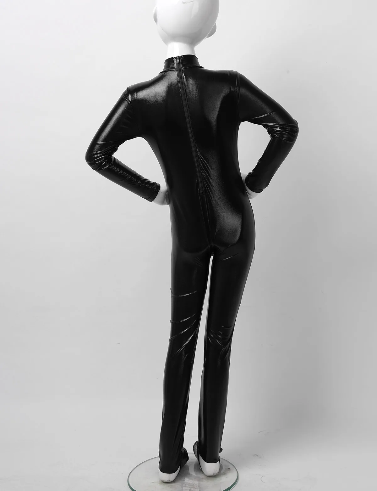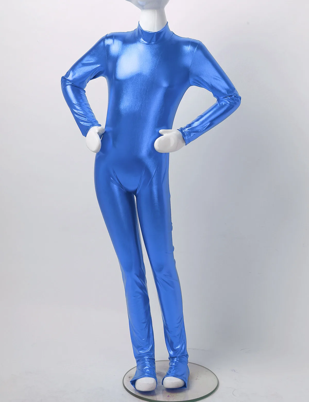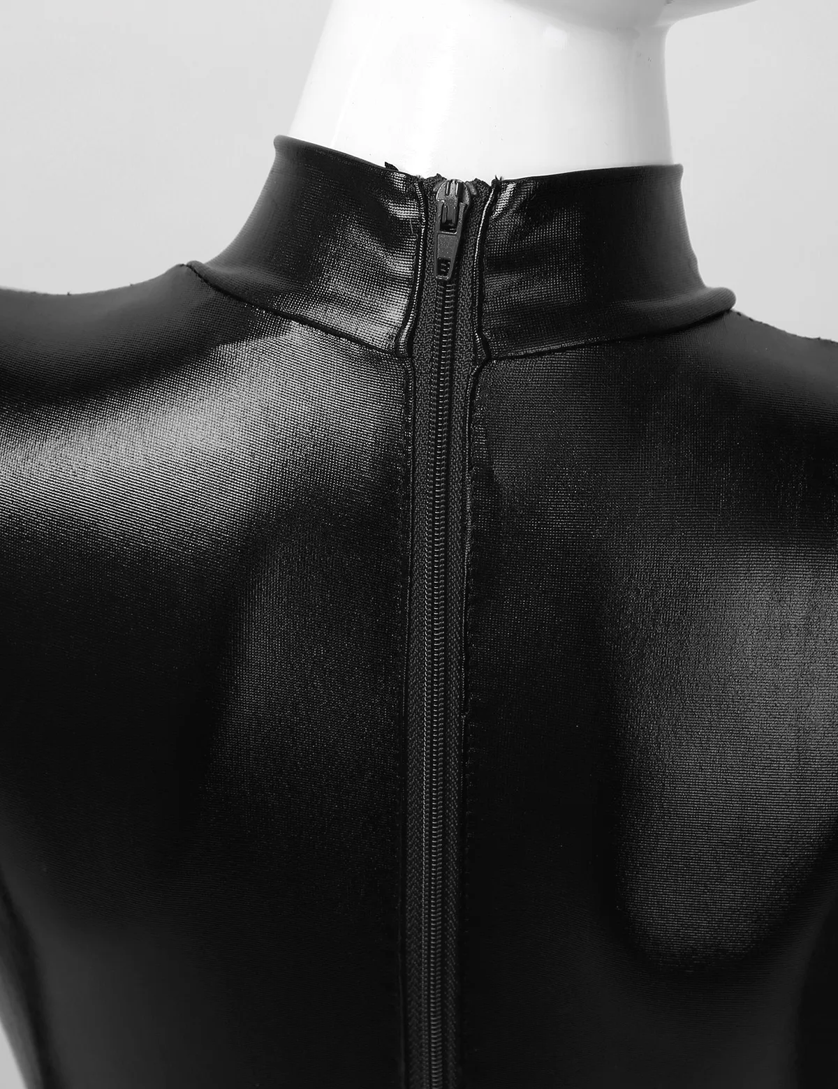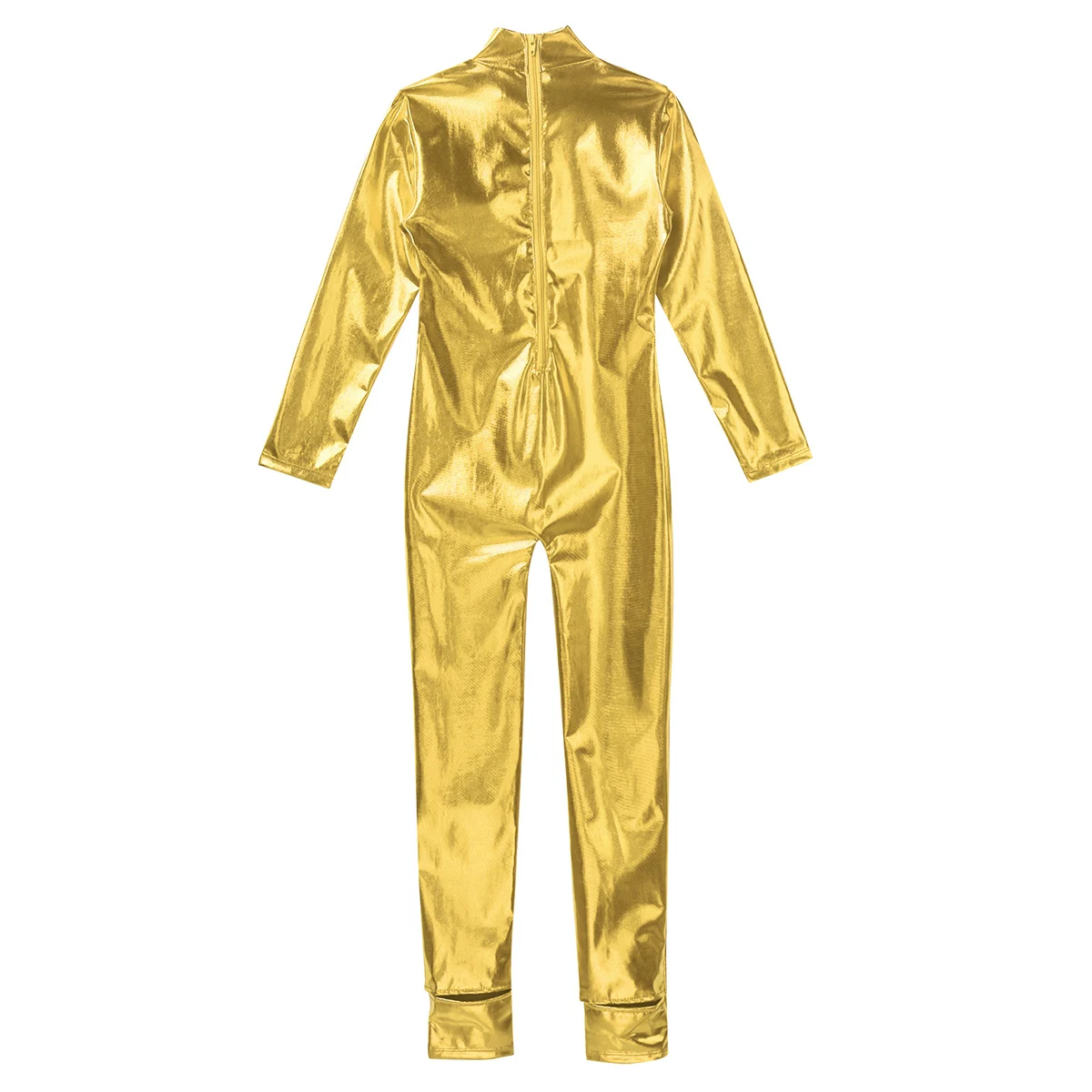 Длинные рукава, ложная горловина, застежка-молния сзади для удобства одевания. Глянцевый металлик.