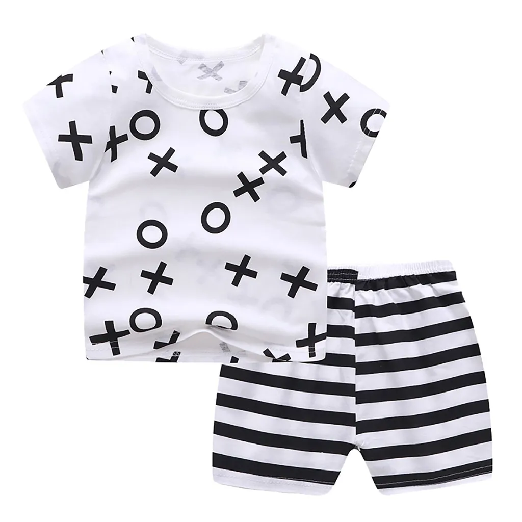 Малыш ребенок мальчики девочки короткий рукав мультфильм Топы рубашка + брюки комплект одежды