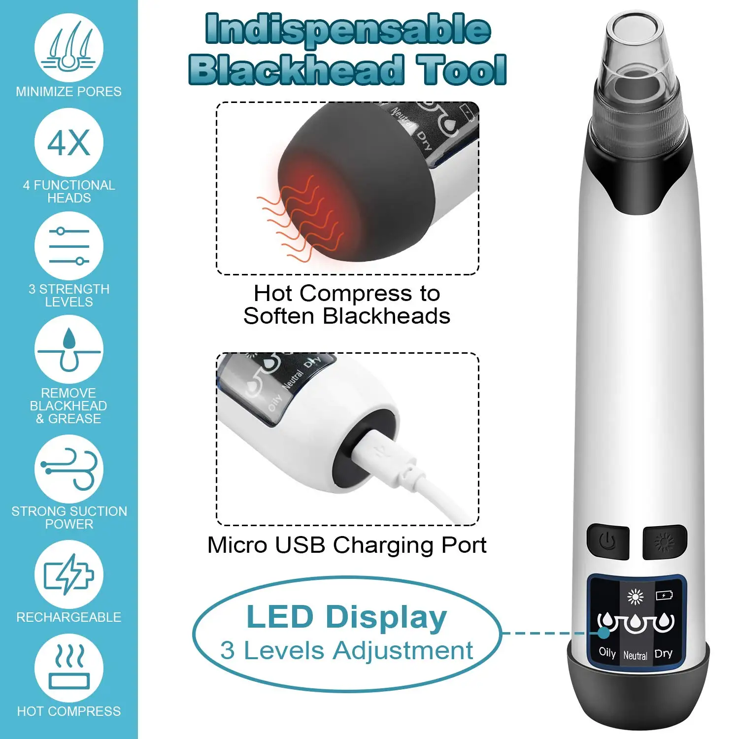 Вакуумный очиститель пор для удаления угрей-электрический инструмент для удаления акне и комедона, очиститель пор для лица, вакуумный комплект для удаления прыщей, очиститель для лица с функцией горячего сжатия