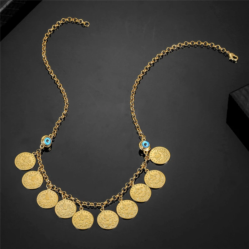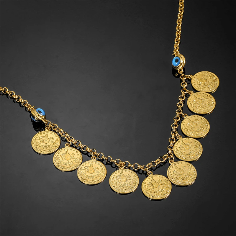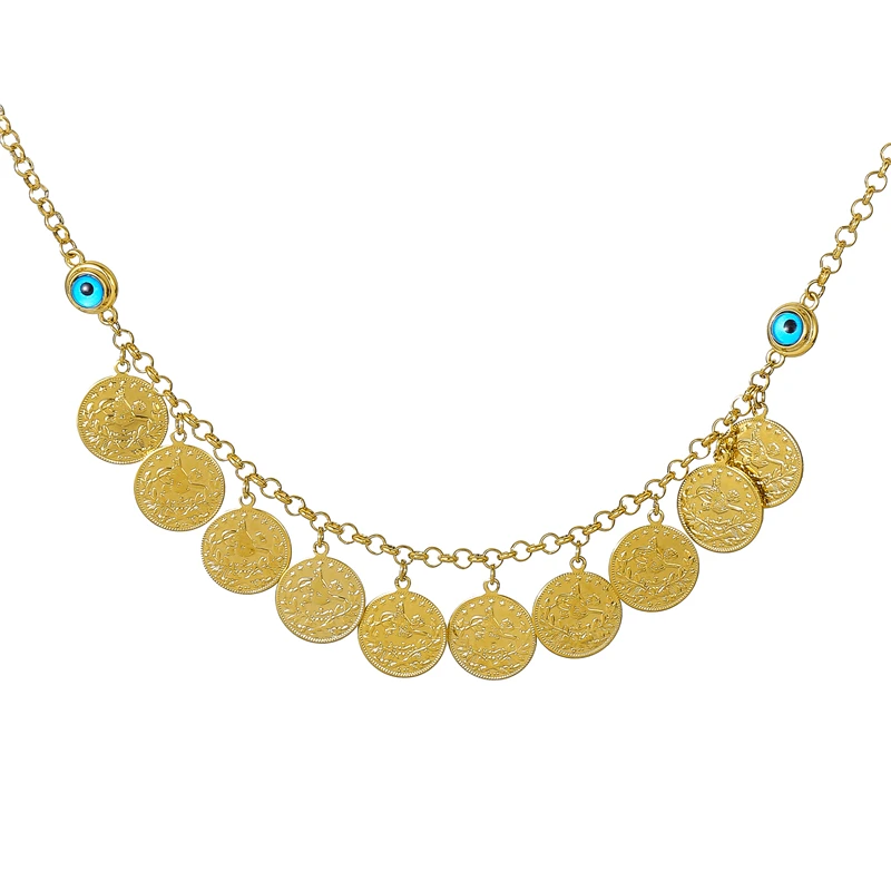 50 см модное классическое ожерелье с кулоном в виде монеты и кристаллов мусульманское ожерелье от сглаза для женщин Ближневосточное арабское ювелирное изделие подарки