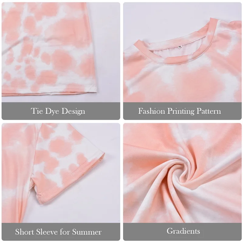 2020 Домашняя одежда, Женский пижамный комплект, домашняя одежда, ночная рубашка с принтом tie-dye, одежда для сна, модная весенне-летняя женская пижама с коротким рукавом.