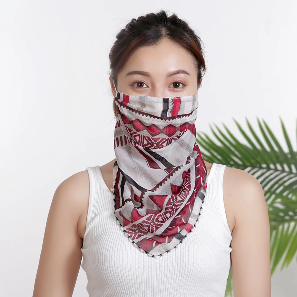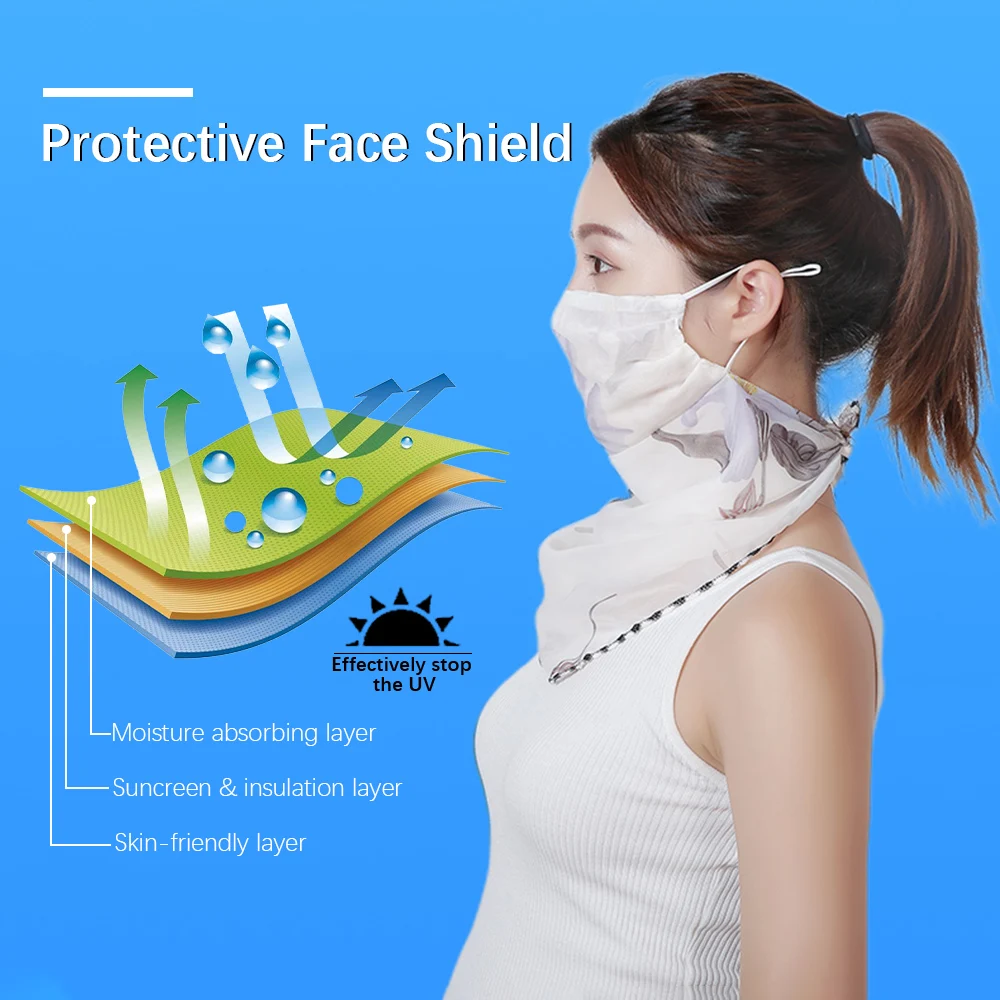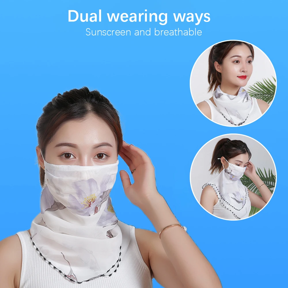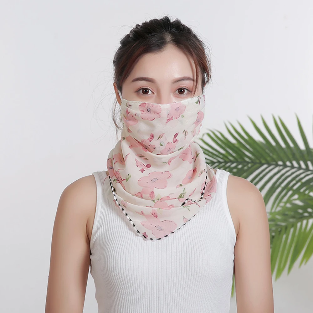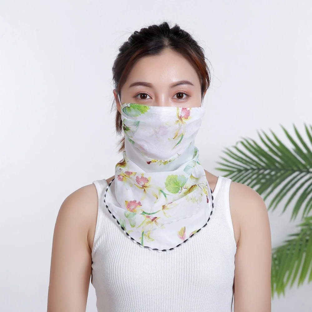 Лицевая сторона из шифонового материала достаточно тонкая и дышащая. С мягкой петлей для ушей, удобно носить. Цветочный принт с красивыми цветами. Носите его, чтобы защитить себя от солнца, пыли и так далее.