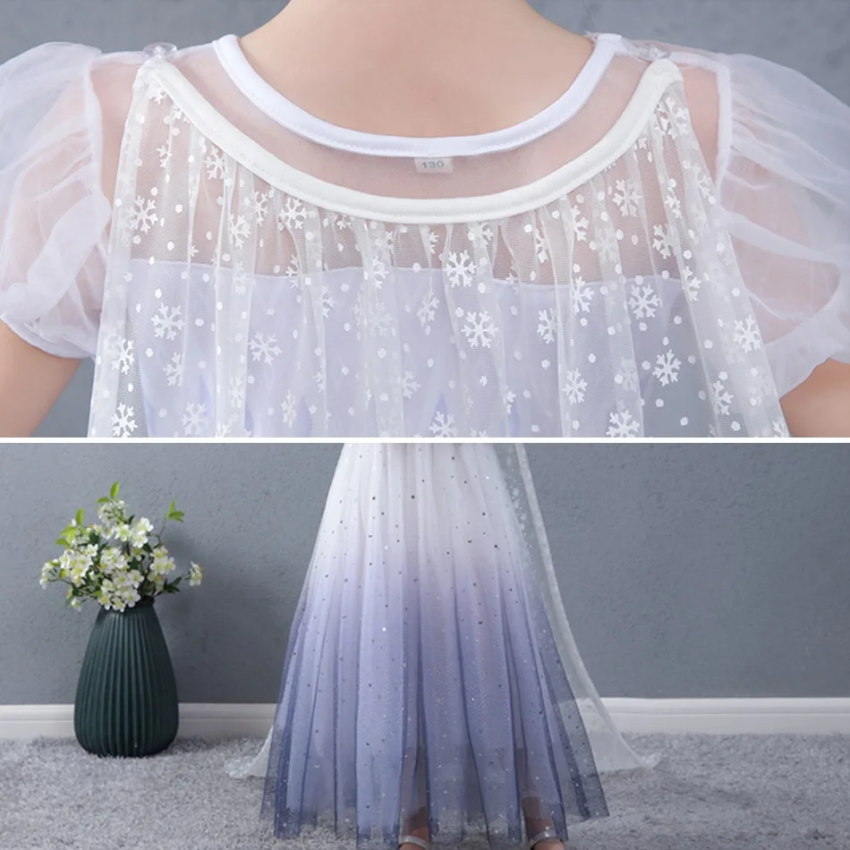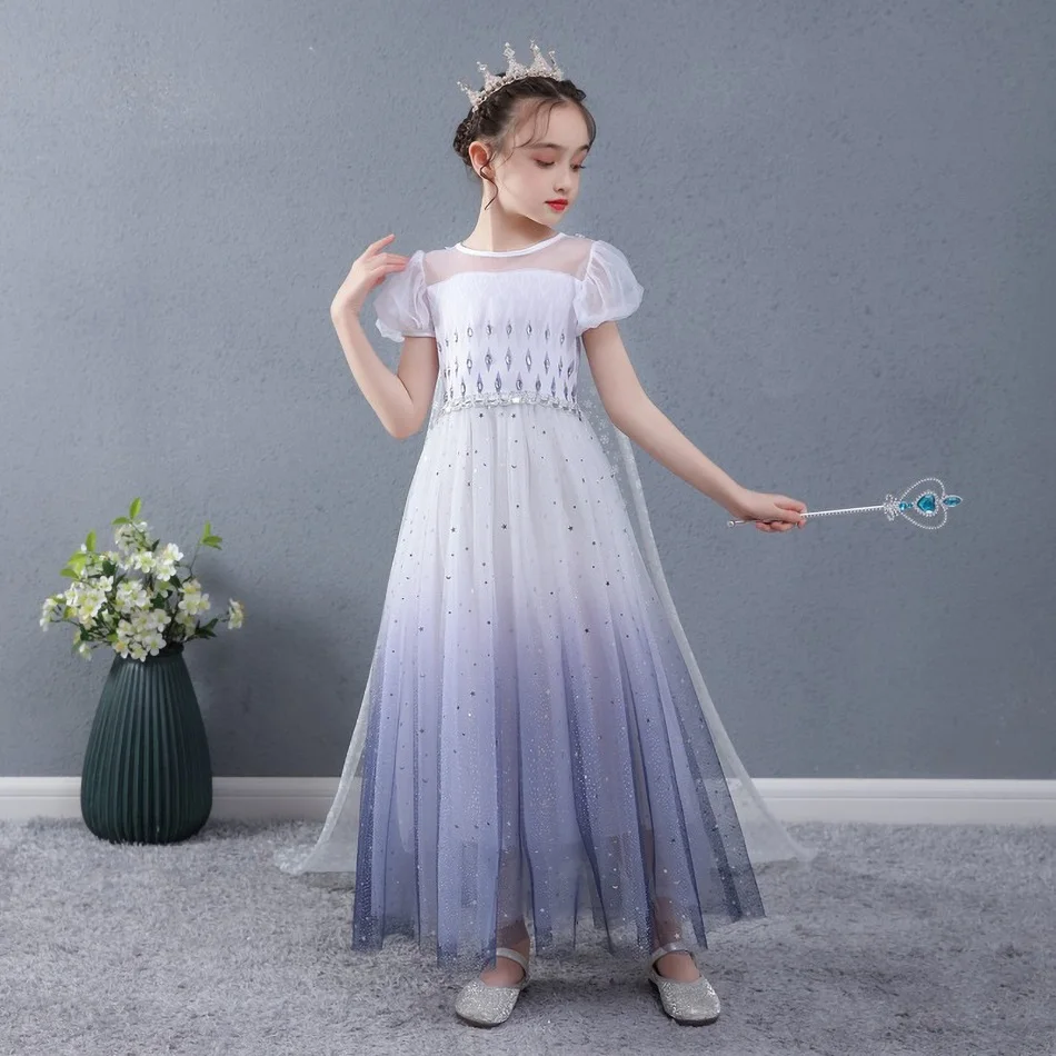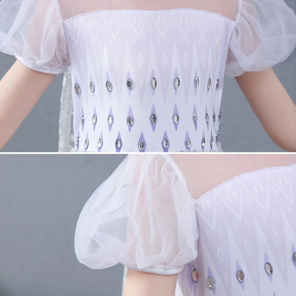 Название: белое платье Эльзы для девочек со съемным плащом; Летние Детские вечерние платья принцессы со стразами; Одежда на Хэллоуин для девочек