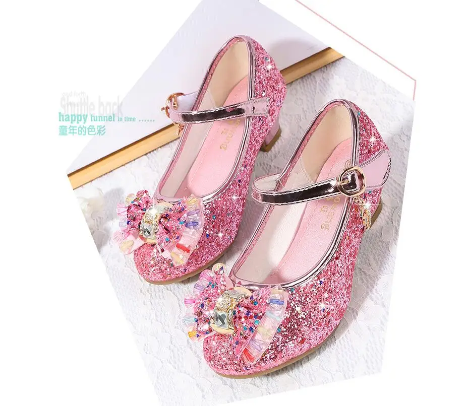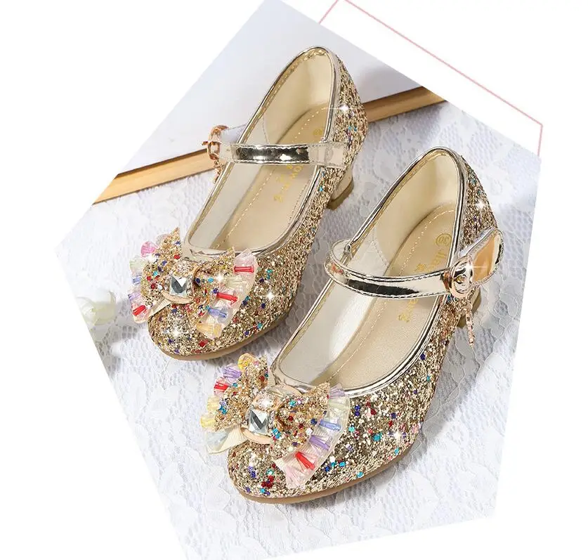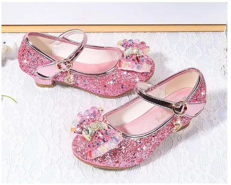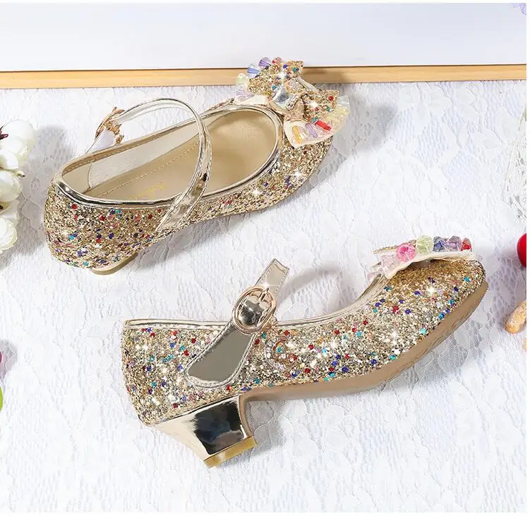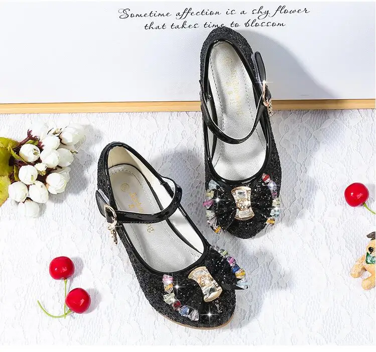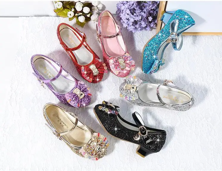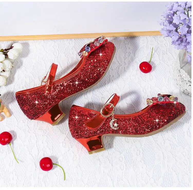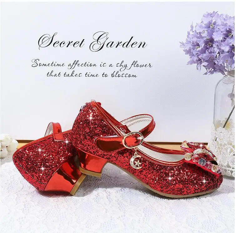 Новинка; Детская обувь; Танцевальные сандалии принцессы на высоком каблуке для девочек; Детская обувь; Блестящие кожаные модные вечерние туфли для девочек; Свадебные туфли