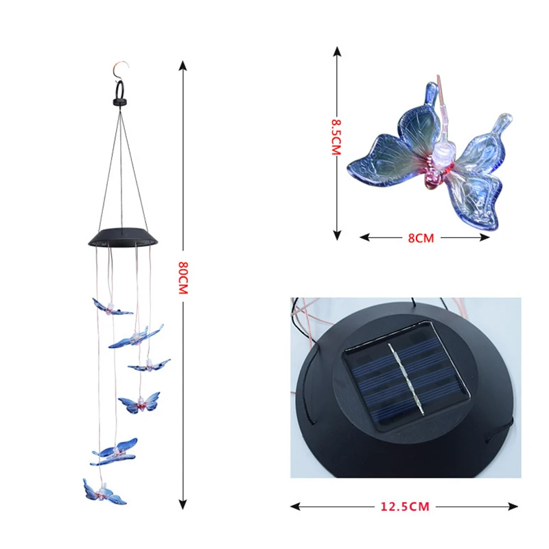 Крытый наружной отделки:Добавьте уникальное подвесное украшение в ваше пространство на открытом воздухе с этими солнечными батареями wind chime. Отлично подходит для лужайки, сада, патио, двора, зала, крыши, гостиной, украшения спальни.