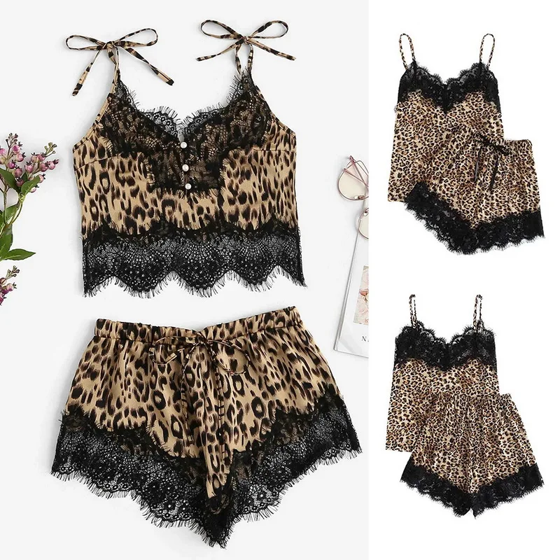 Комплект сексуальной пижамы слинг нижнее белье с вышивкой, с рисунками леопарда печати нижнее бельё для девочек и шорты; Пижамный комплект