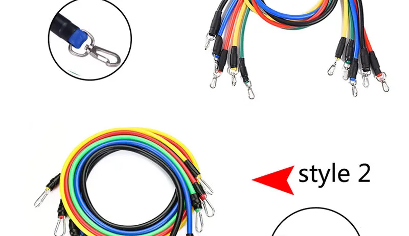 5 резинок сопротивления, 1 якорь для двери, 1 сумка для переноски, 2 ручки с пенопластом. 2 лямки для лодыжки