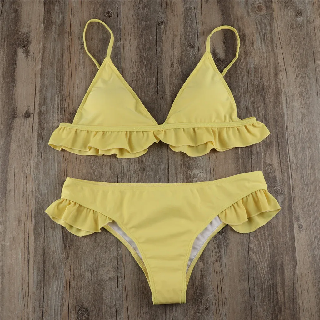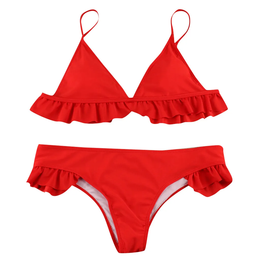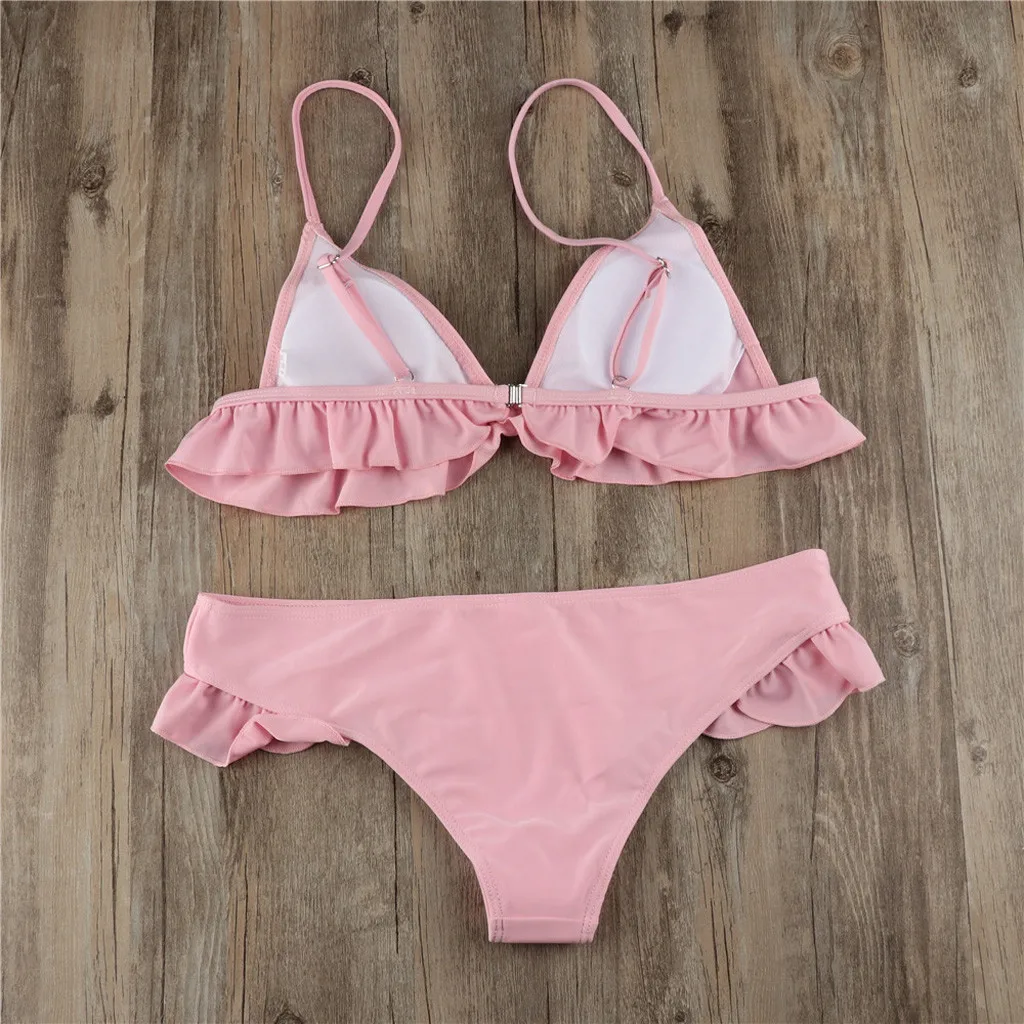 Women Padded Push-up Bra Bikini Set Ruffles Swimsuit Low Waist Bathing Suit Swim